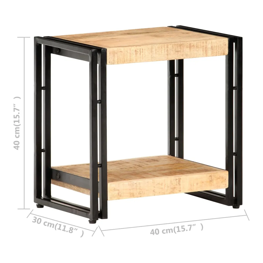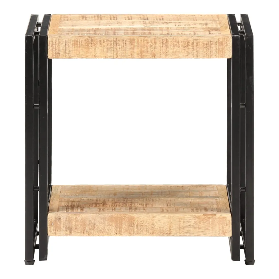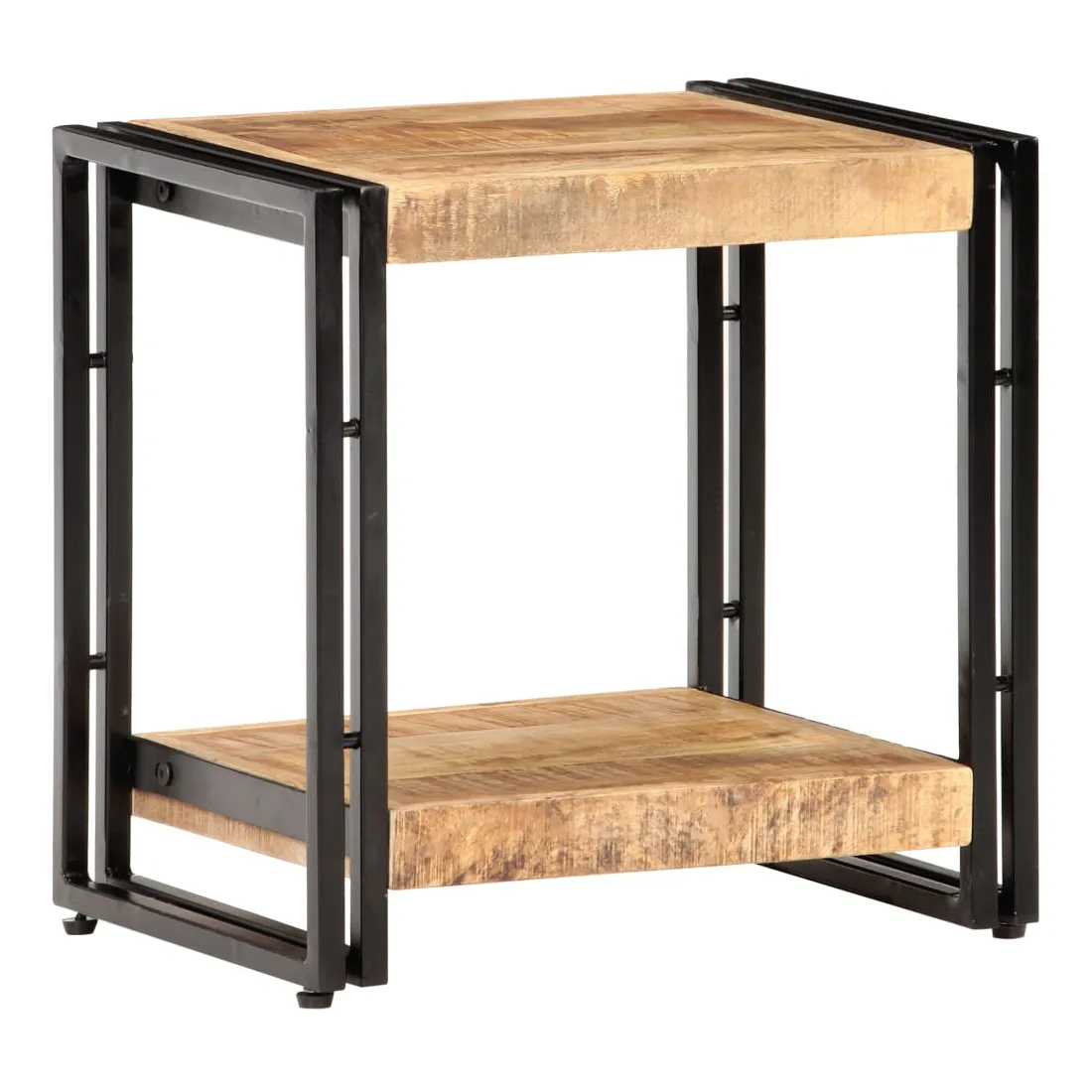 - Matériau : bois de manguier brut avec une finition naturelle, fer avec revêtement en poudre noire