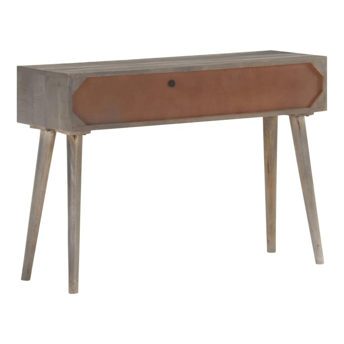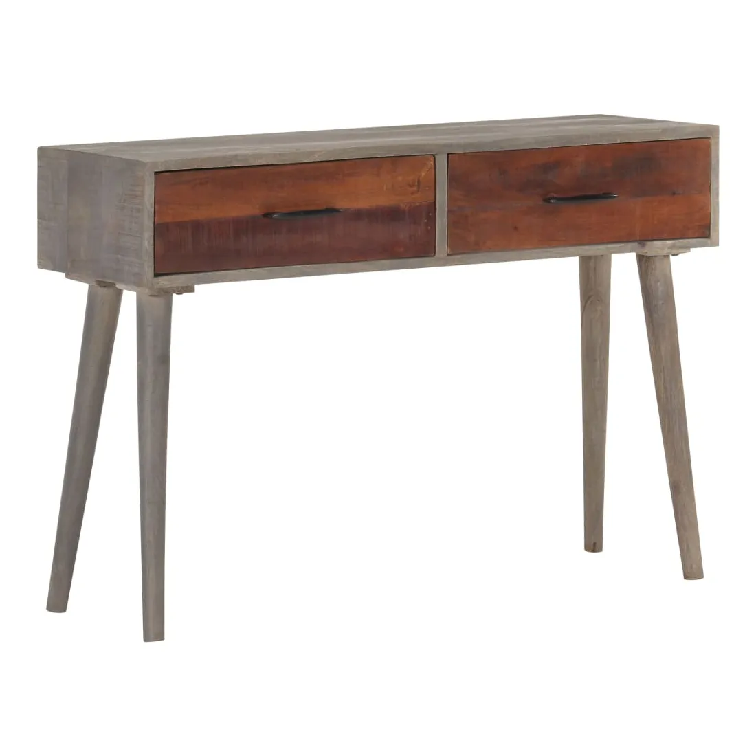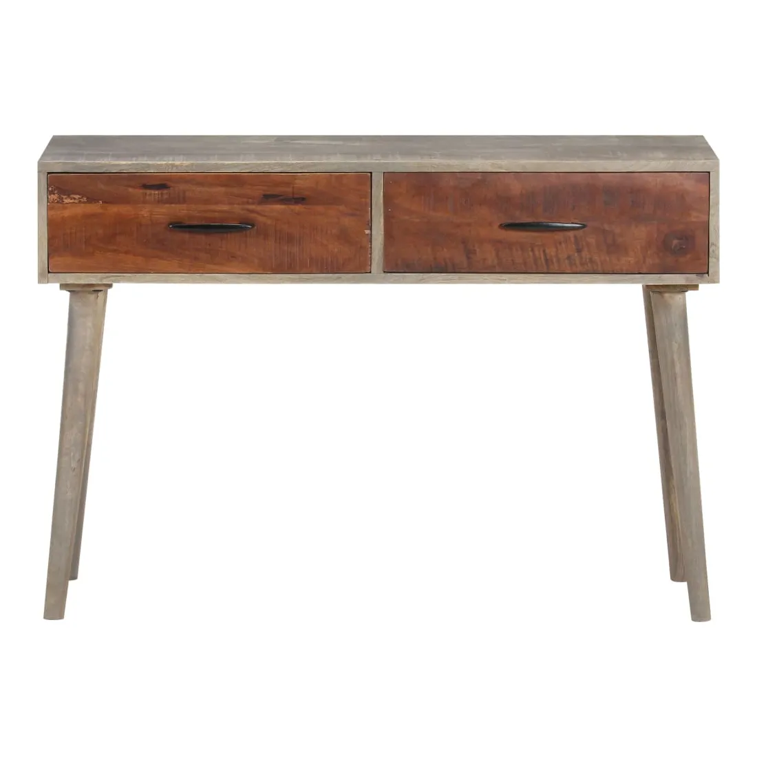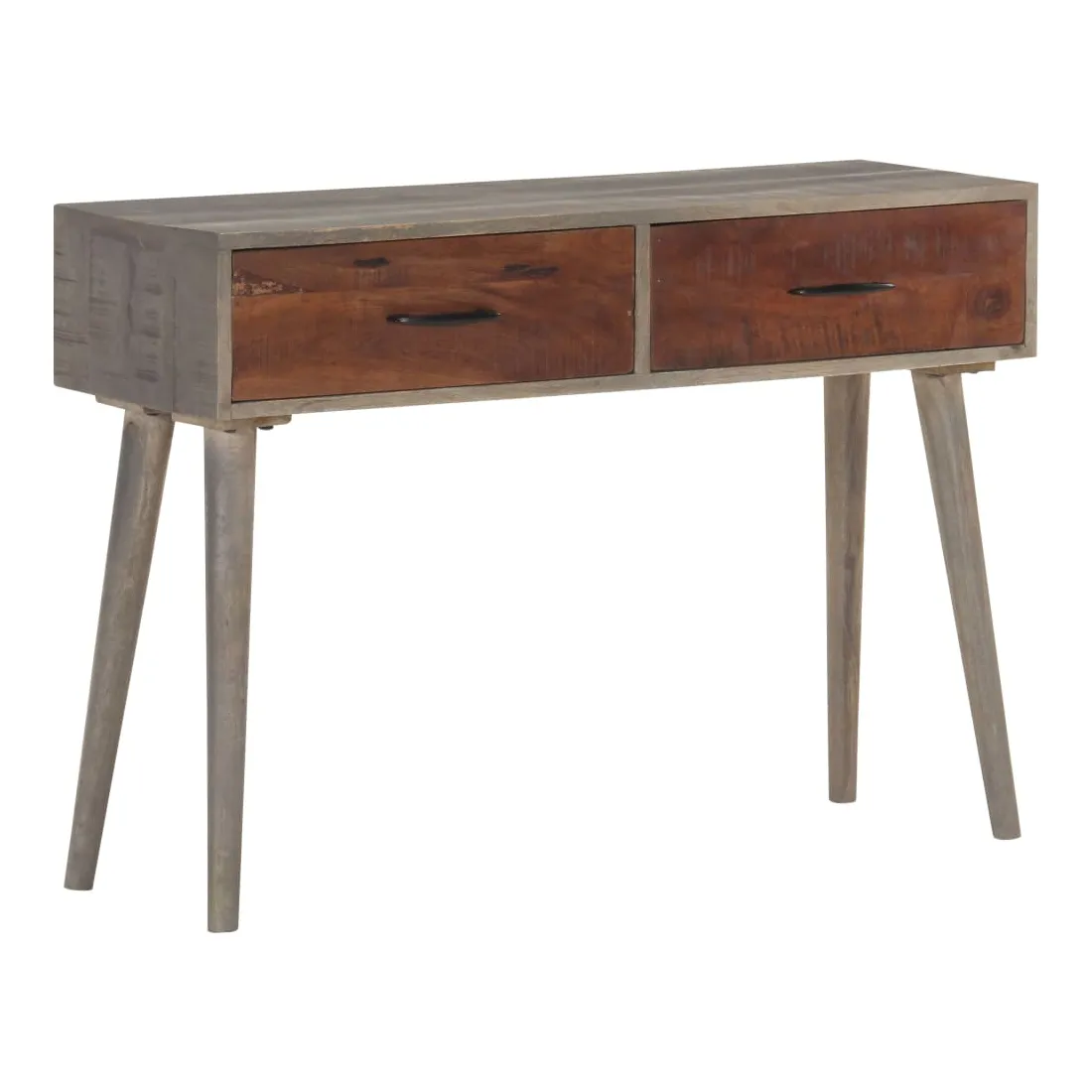Cette table console en bois sera un complément pratique à votre salon, salle à manger, couloir, etc. Vous pouvez également la placer sous un miroir. La table d'entrée est en bois de manguier massif, un bois dur tropical. Il a la force de soutenir le poids et résiste également à l'usure du temps. De plus, le savoir-faire exquis et les beaux grains de bois rendent chaque pièce légèrement différente l'une de l'autre. Cette table d'appoint dispose de 2 tiroirs, offrant un espace de rangement suffisant pour les petits objets comme les clés, les blocs-notes, les stylos et autres bibelots. En outre, cela aide à garder votre pièce bien rangée. Le dessus de table robuste est idéal pour afficher des objets décoratifs, des cadres photo ou des plantes en pot. Remarque importante : Les couleurs varient d'une pièce à une autre, rendant chacune d'elle unique ; la livraison est aléatoire.