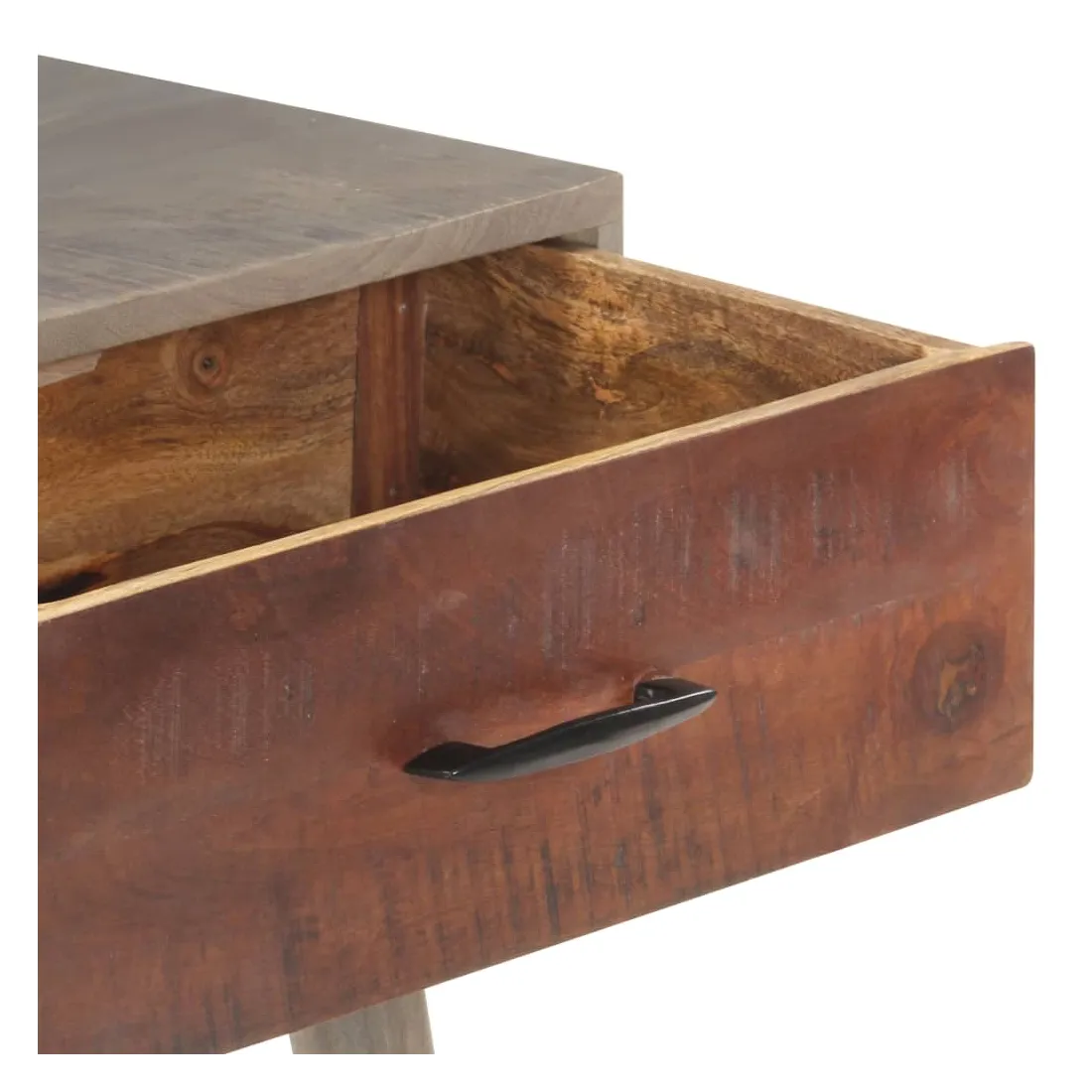 - Matériau : bois de manguier massif brut avec finition vieillie, bois massif d'acacia avec finition miel