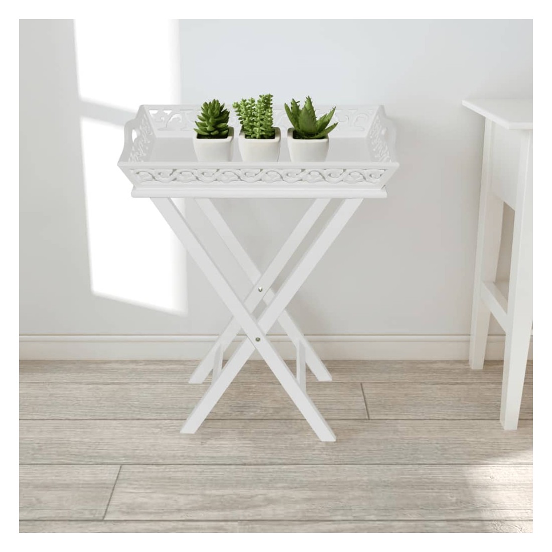 La table avec plateau de pots peut être utilisée comme espace de stockage pour des pots de fleurs et d'autres articles décoratifs. Elle sera un excellent supplément à votre couloir, atelier, jardin ou patio. Ce plateau, avec un beau design découpé, est détachable et les pieds sont pliables pour un rangement facile lorsqu'il n'est pas utilisé, ce qui vous fait gagner beaucoup d'espace. Cette table d'appoint est fabriquée en MDF et de pinède de haute qualité avec une finition peinte en blanc pour plus de durabilité et de robustesse, ce qui vous donne des années de service.