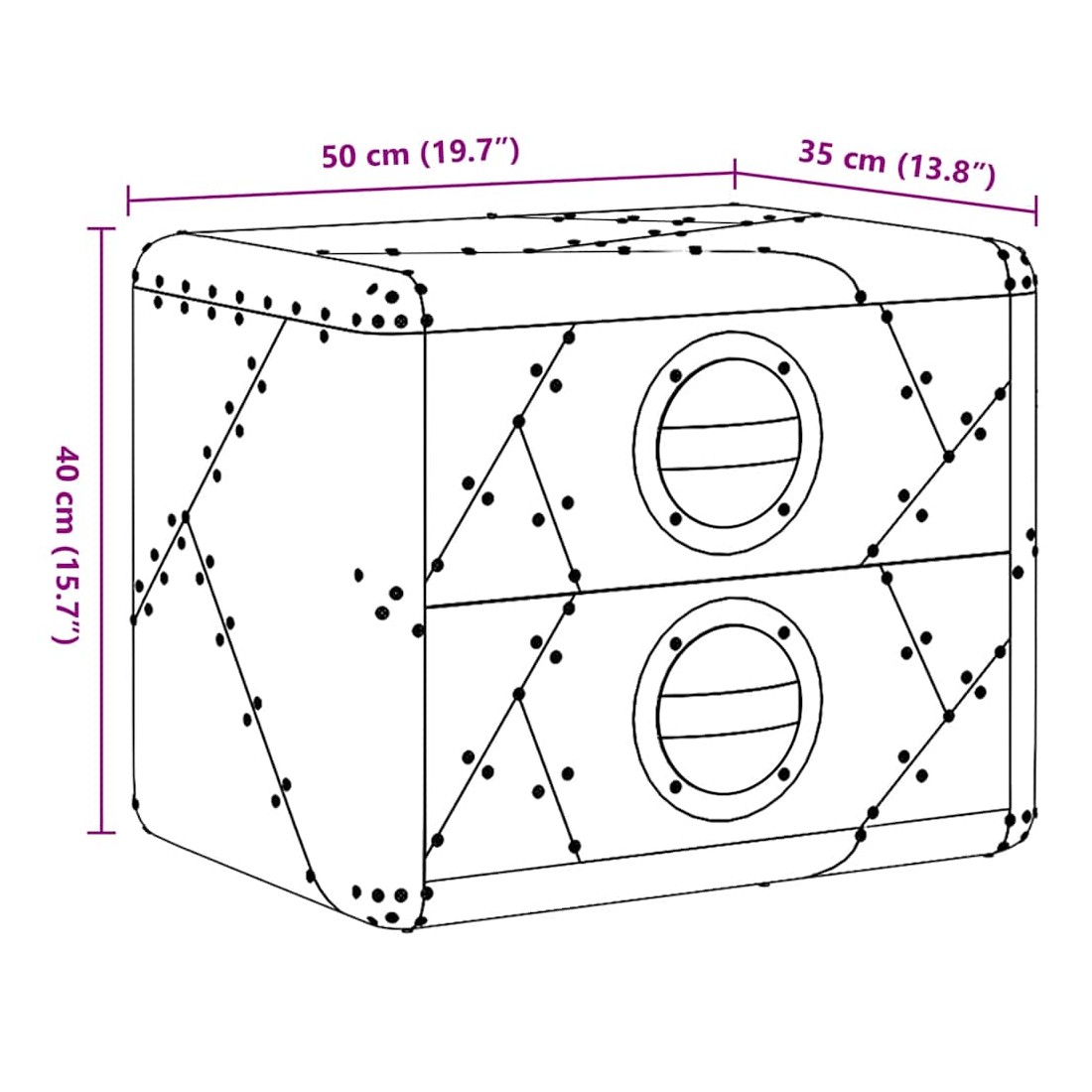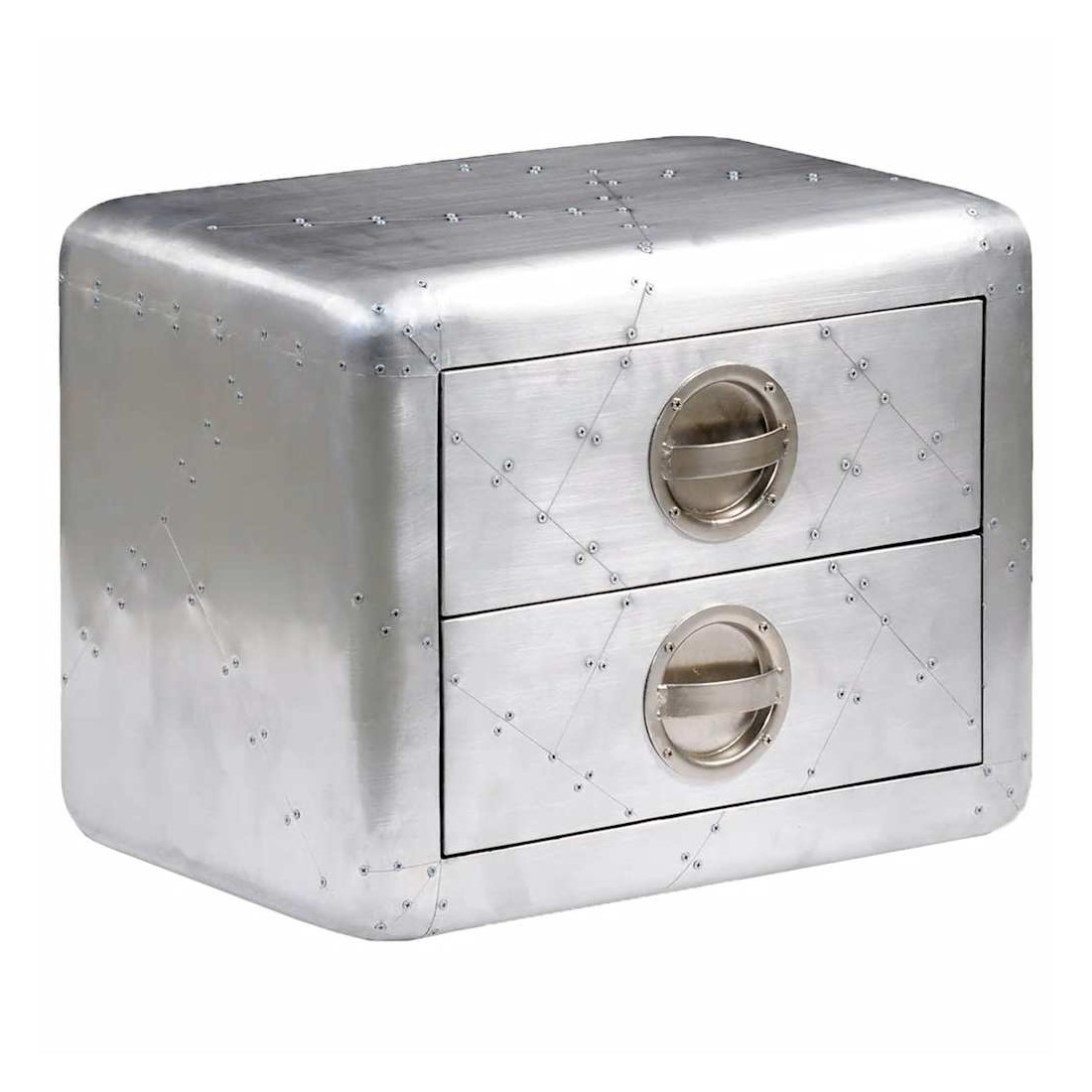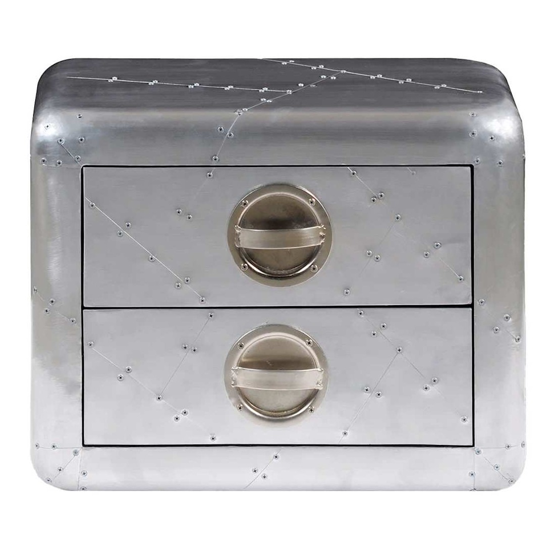 Cette table d'appoint de haute qualité peut être placée dans n'importe quelle pièce. Grâce au design élégant et compact, elle peut également être utilisée comme une table basse, une table de chevet, une table d'extrémité, etc. Cette table d'appoint a deux tiroirs pour les petits objets comme les clés, bloc-notes, stylos et autres bibelots. Le dessus de table peut être utilisé pour placer de la nourriture ou des boissons ou pour exposer des objets décoratifs comme des cadres photo, ou même des plantes en pot. Cette table d'appoint est en bois massif et sa surface est revêtue d'un patchwork de panneaux en aluminium poli, rehaussés de vis en acier exposées, ce qui la rend extrêmement durable. Les bords lisses et les poignées de tiroir rétro donnent à la table d'appoint un aspect unique.