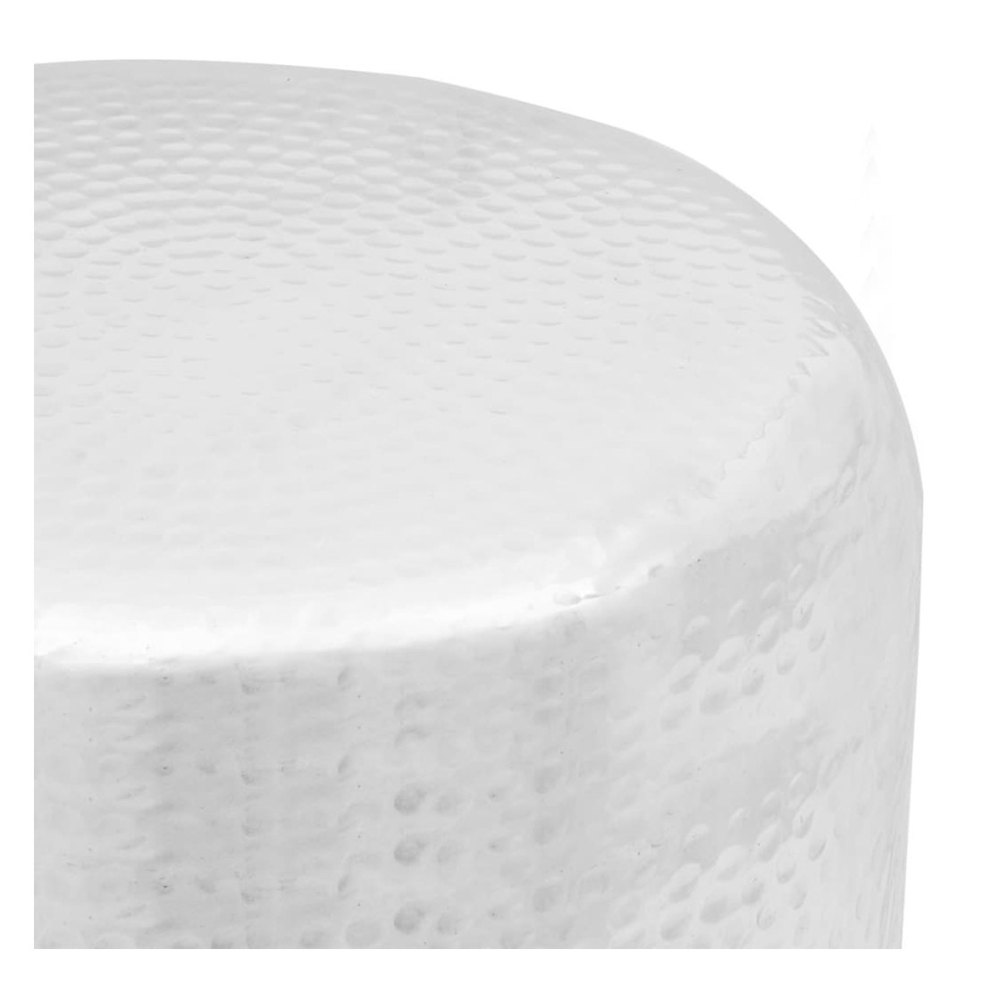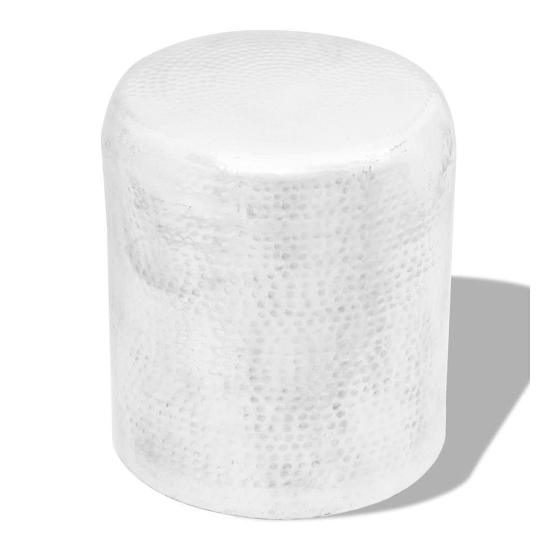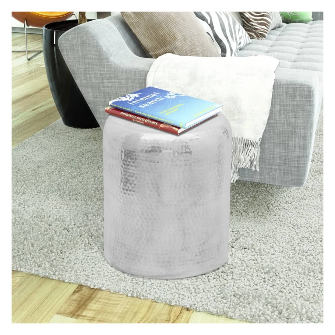 Ce tabouret en aluminium, élégant et rustique, est non seulement confortable pour vous asseoir, mais aussi très décoratif. Il peut également être utilisé comme une table d'appoint pour placer des aliments ou des boissons, ou pour afficher des objets décoratifs comme des cadres photo, ou même des plantes en pot. Il deviendra le point central de n'importe quelle pièce et complétera une variété de styles de meubles. Le tabouret / la table d'appoint est fabriqué en aluminium de haute qualité avec une finition polie, ce qui le rend extrêmement durable. La finition martelée attrayante ajoute une texture tactile au tabouret.