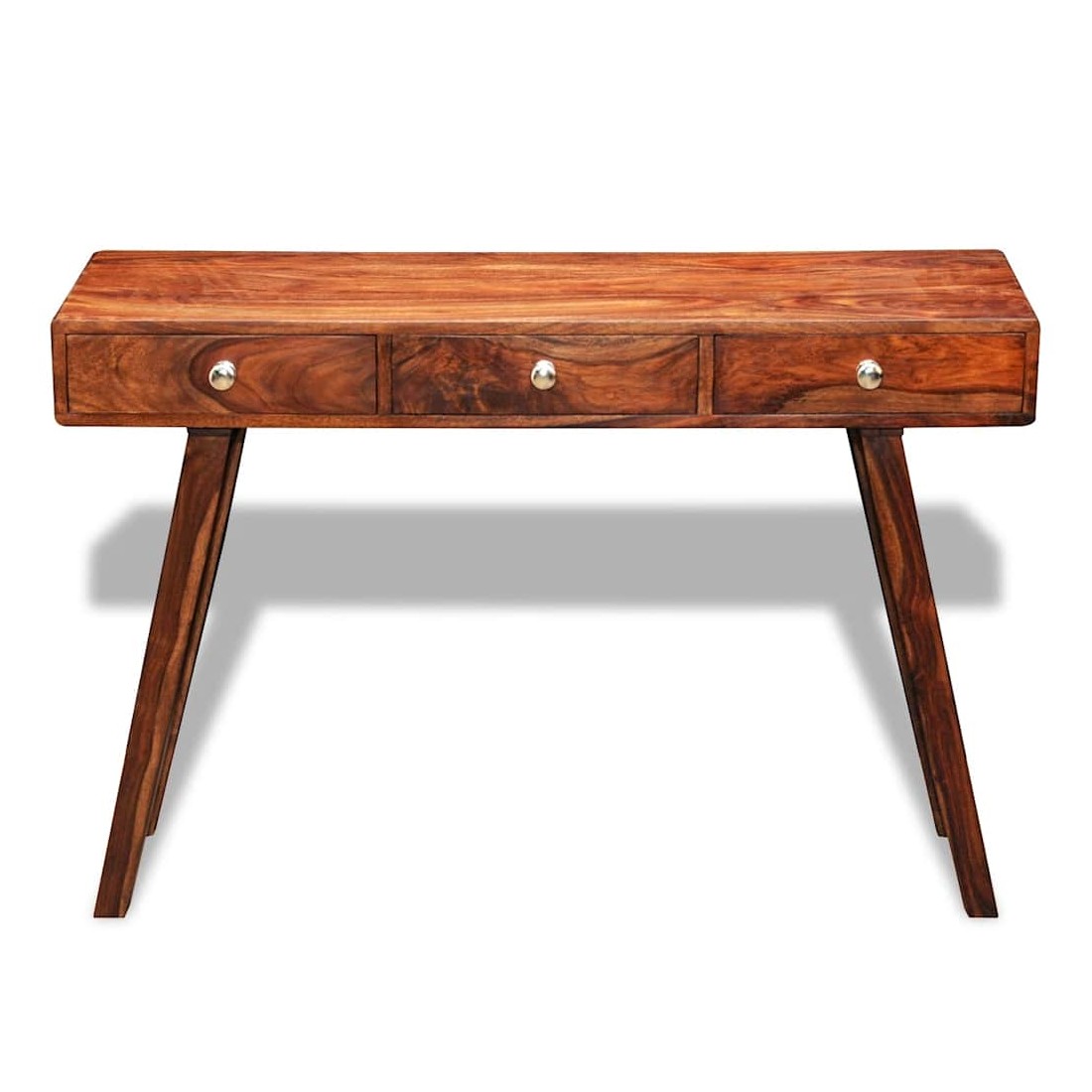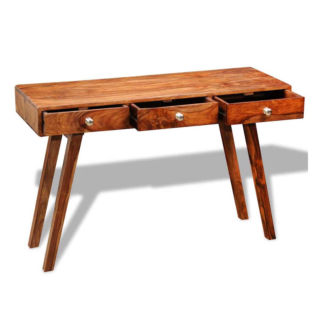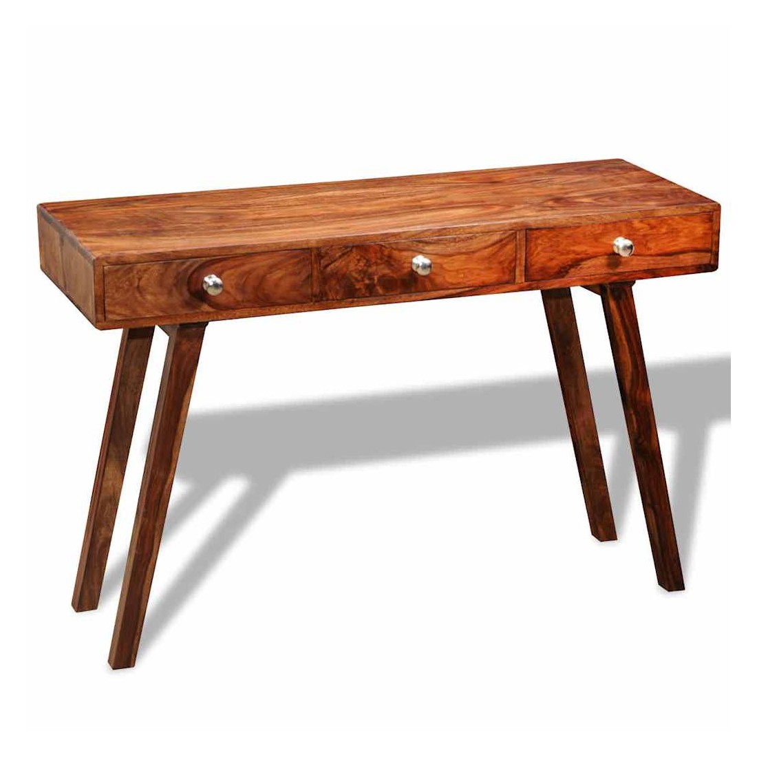 Ce buffet vintage en bois est à la fois élégant et pratique. Il peut également être utilisé comme table console ou armoire console. Le design élégant fera de ce buffet un point attrayant de n'importe quelle pièce. Ce buffet a un dessus vigoureux, sur lequel vous pouvez placer des articles décoratifs comme des paniers de fruits ou des vases. Ses 3 grands tiroirs vous offrent un espace de rangement supplémentaire pour vos ornements, cosmétiques et autres effets personnels. Cette table de chevet est faite de bois massif. Il est un bois dur tropical qui est bien connu pour ses grains riches et aussi connu sous le nom de palissandre ou de bois de rose. Elle est entièrement faite à la main et les beaux grains de bois rendent chaque pièce unique et légèrement différente l'une de l'autre. Les pieds en bois contribuent à la construction robuste. Remarque importante : les couleurs varient d'une pièce à l'autre, rendant chaque pièce unique. La livraison est aléatoire, garantissant l'exclusivité et l'individualité de votre produit.
