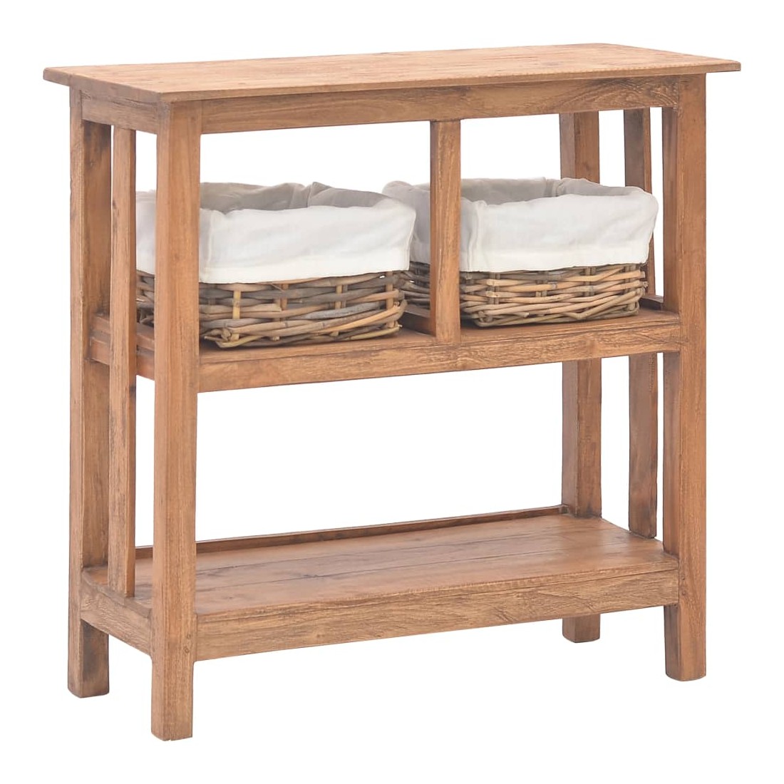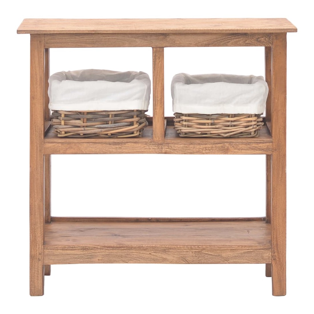 Cette table console sera un choix parfait si vous cherchez à ajouter une touche de charme rustique à votre décor. La table a 2 paniers en rotin amovibles et 1 étagère, offrant un grand espace de rangement. Les paniers amovibles sont non seulement pratiques mais ajoutent également une touche décorative. Fabriquée en bois d'acajou massif, cette table console en bois massif est extrêmement durable et robuste. L'acajou est un bois dur tropical qui se distingue par sa beauté, sa durabilité et sa couleur. Un savoir-faire spécial a été utilisé pour donner à cet article un aspect vintage, chaleureux et authentique. Remarque importante : les couleurs varient d'une pièce à l'autre, rendant chacune de nos tables unique. La livraison est aléatoire, ce qui garantit l'exclusivité et l'individualité de votre produit.