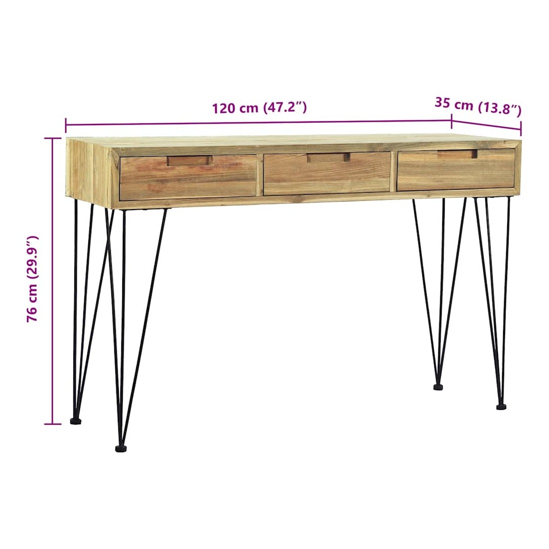 Table console 120x35x76 cm Teck massif