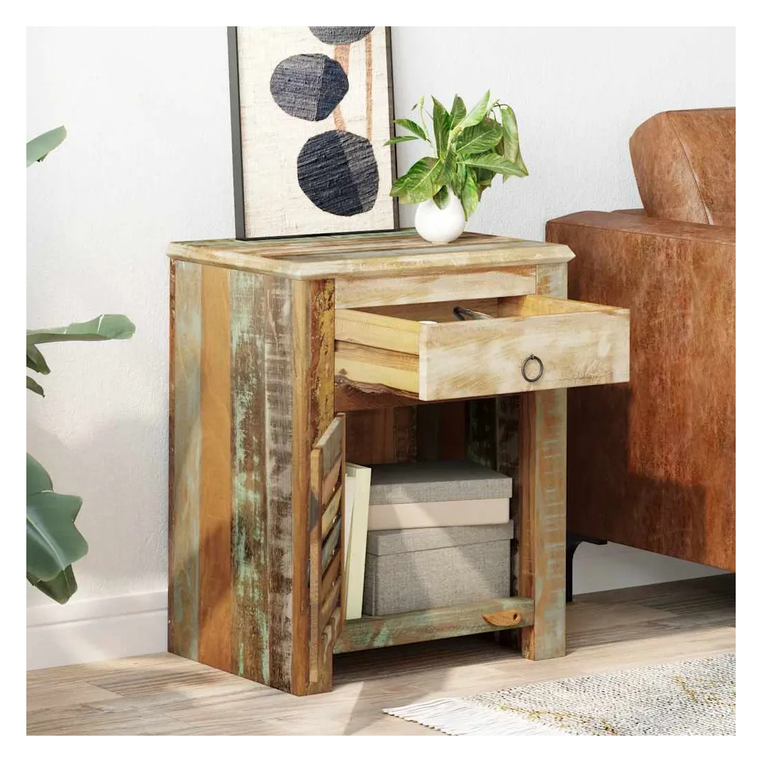 Table de coin avec 1 tiroir et 1 porte Bois de récupération