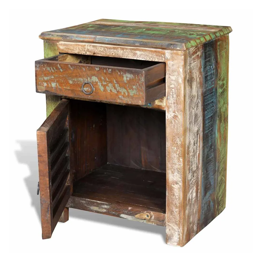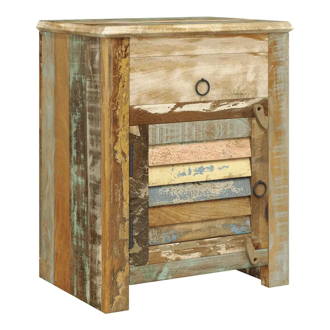 • Bois multicolore avec anneaux de tirage en fer