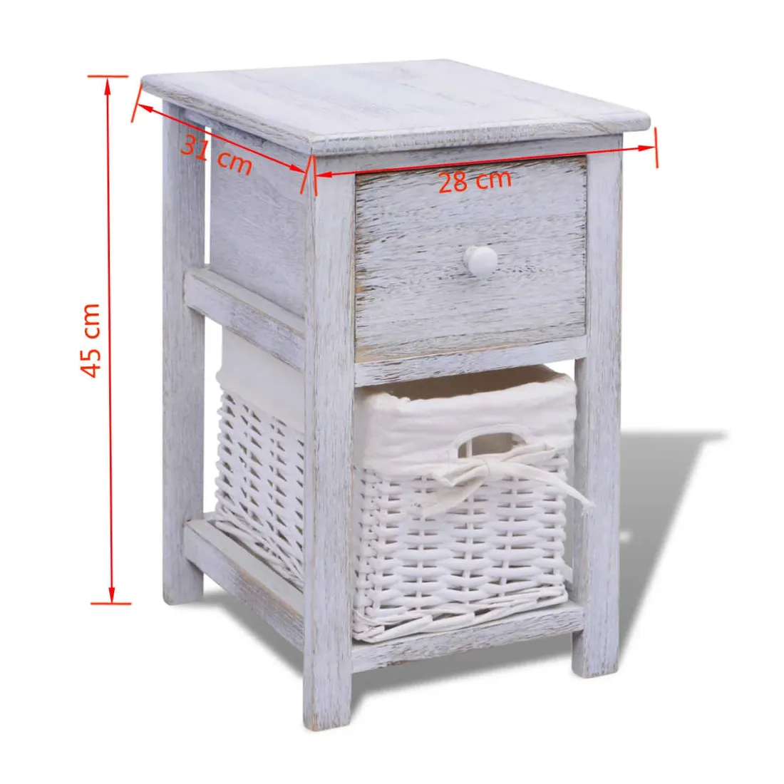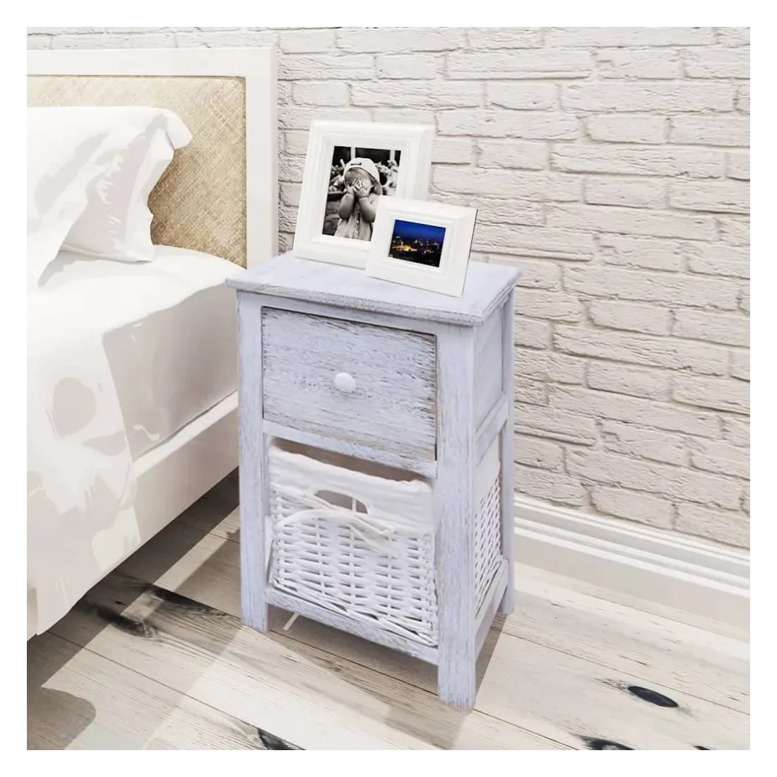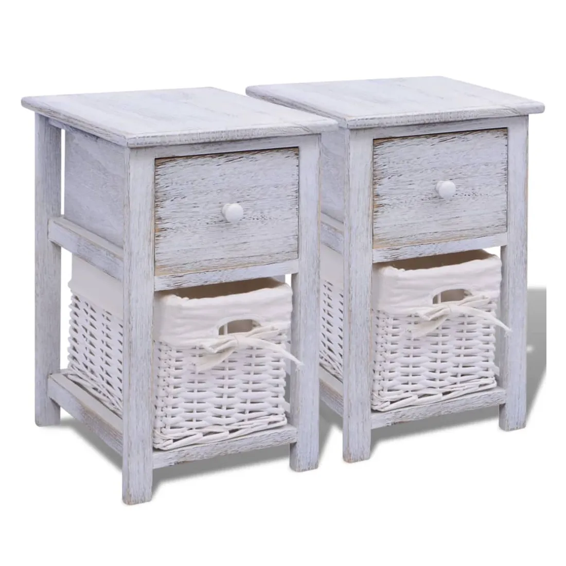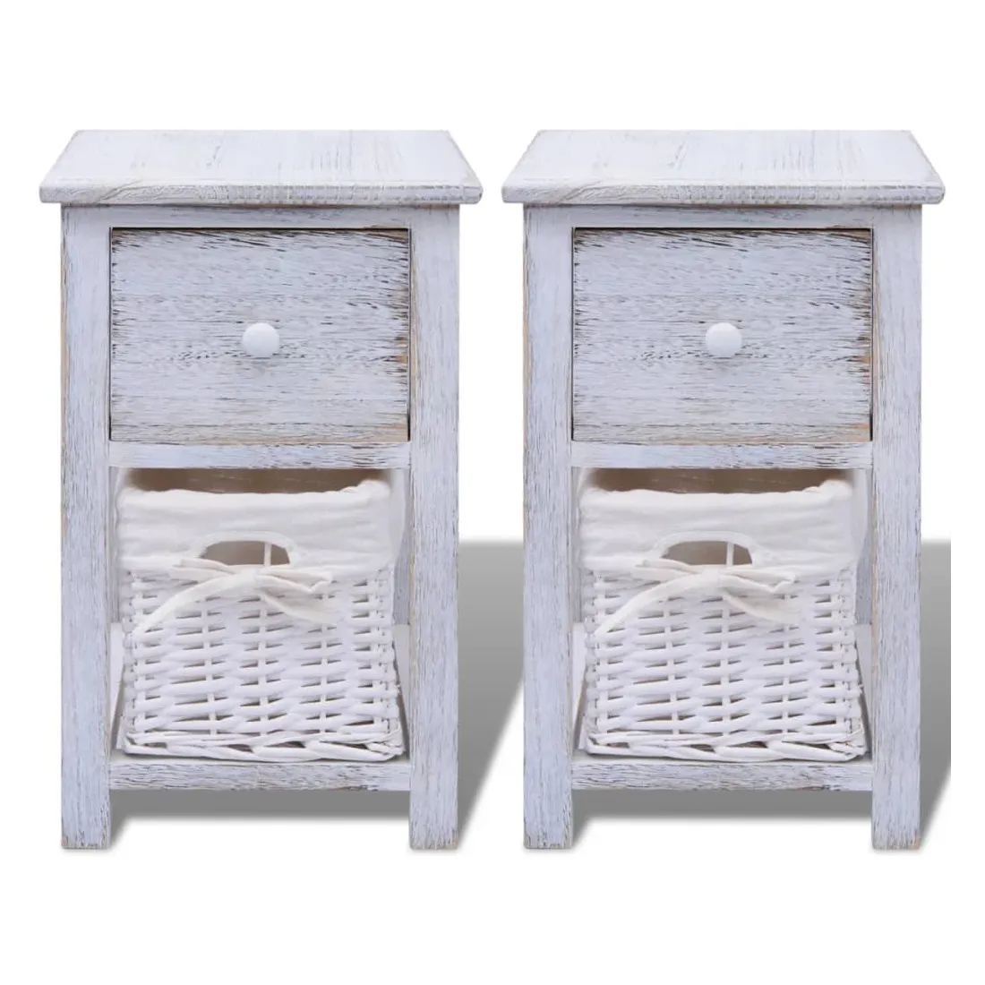 Ajoutez une touche de charme rustique à votre maison avec ces tables de chevet ! Elles peuvent être utilisées aussi comme support de téléphone, armoire latérale, petite armoire, armoire à tiroir, armoire de rangement, table de nuit, table auxiliaire ou armoire auxiliaire. Ces armoires compactes sont dotées d'un tiroir coulissant qui fournissent amplement d'espace pour garder des petits articles rangés et à la portée de main. Le panier détachable en dessous du tiroir fournit un espace de rangement additionnel. La doublure en tissu du panier peut être retirée et lavée. La livraison comprend 2 tables de chevet.
