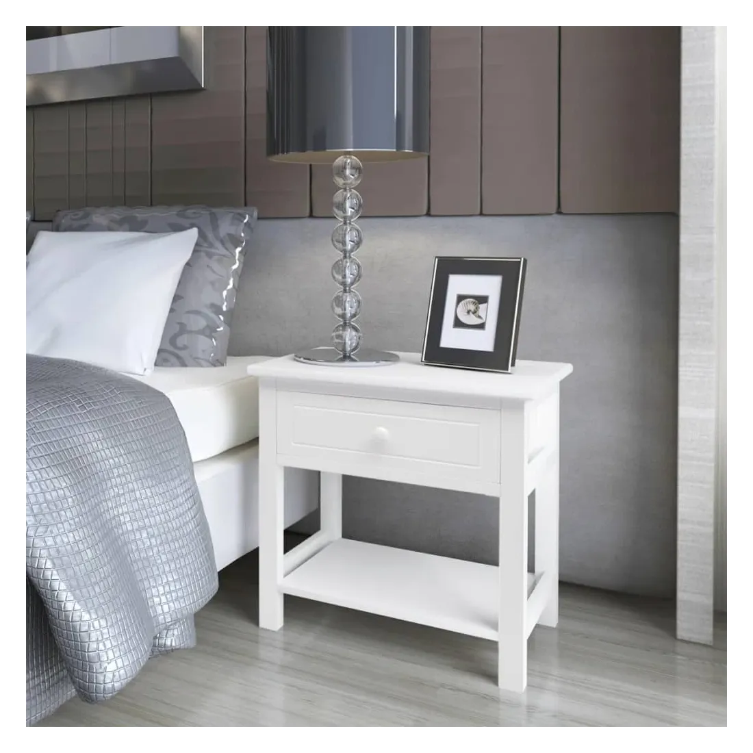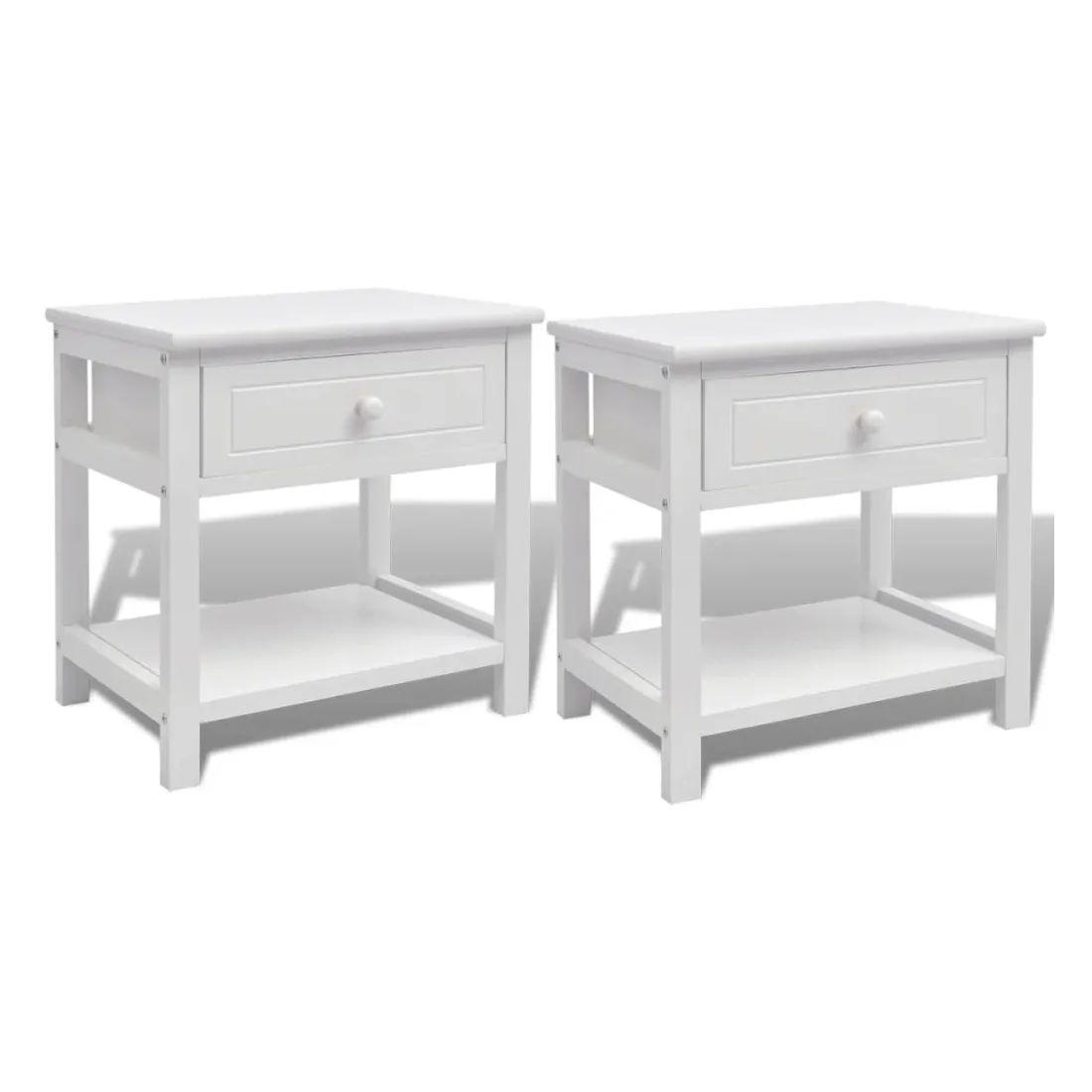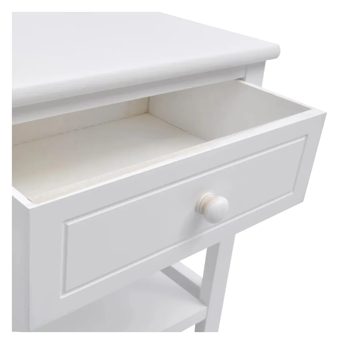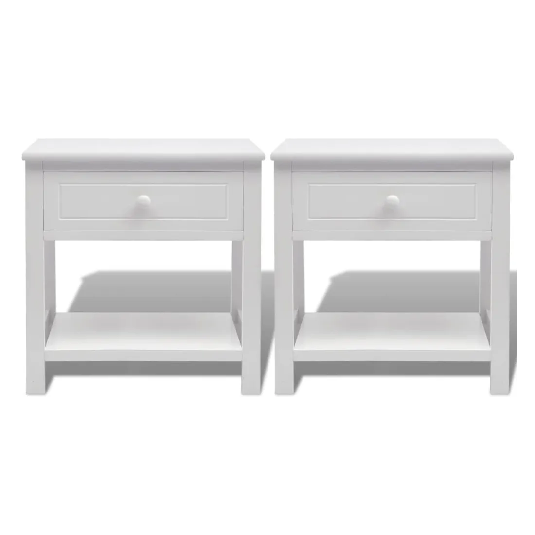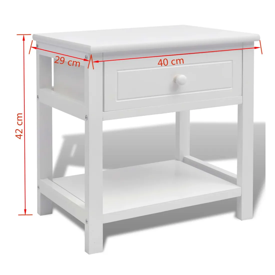 Comme tous les meilleurs designs, cet ensemble de deux tables de chevet avec tiroir est simple, propre et sûr de ne jamais se démoder, ce qui en fera un supplément formidable dans votre chambre à coucher ou salon. Elles peuvent également être utilisées comme supports de téléphone, armoires latérales, petites armoires, armoires à tiroirs, armoires de rangement, armoires de chambre à coucher, tables de chevet, etc. Ces armoires compactes sont dotées d'un tiroir coulissant qui fournissent amplement d'espace pour garder des petits articles rangés et à la portée de main. L'étagère en dessous du tiroir fournit un espace de rangement additionnel. Fabriqué en matériaux de haute qualité, ce meuble est durable et facile à nettoyer. La livraison comprend 2 tables de chevet. L'assemblage est très
