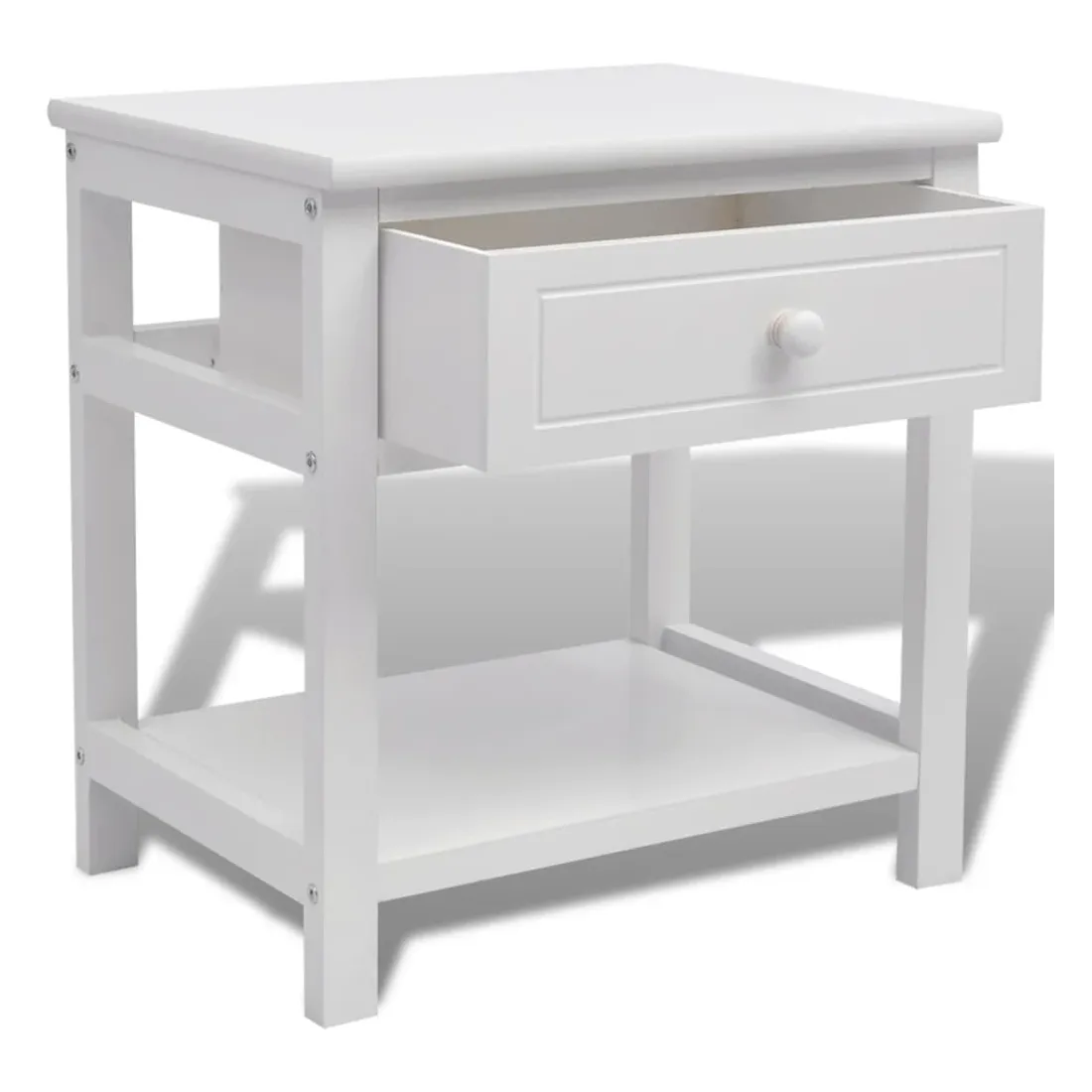 Comme tous les meilleurs designs, cet ensemble de deux tables de chevet avec tiroir est simple, propre et sûr de ne jamais se démoder, ce qui en fera un supplément formidable dans votre chambre à coucher ou salon. Elles peuvent également être utilisées comme supports de téléphone, armoires latérales, petites armoires, armoires à tiroirs, armoires de rangement, armoires de chambre à coucher, tables de chevet, etc. Ces armoires compactes sont dotées d'un tiroir coulissant qui fournissent amplement d'espace pour garder des petits articles rangés et à la portée de main. L'étagère en dessous du tiroir fournit un espace de rangement additionnel. Fabriqué en matériaux de haute qualité, ce meuble est durable et facile à nettoyer. La livraison comprend 2 tables de chevet. L'assemblage est très facile.
