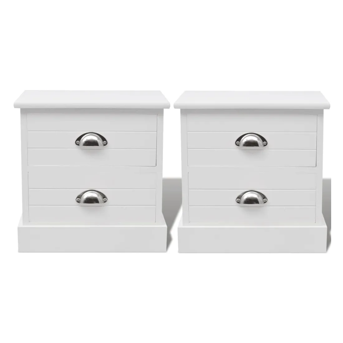 Ces tables de chevet en style français classique ajoutent une touche de charme rustique à votre espace de vie, salon ou chambre à coucher. Elles peuvent être utilisées aussi comme support de téléphone, armoire latérale, petite armoire, armoire à tiroir, armoire de rangement, table de nuit, table auxiliaire ou armoire auxiliaire. Ces armoires compactes sont dotées de 2 tiroirs coulissants qui fournissent amplement d'espace pour garder des petits articles rangés et à la portée de main. L'étagère en dessous du tiroir fournit un espace de rangement additionnel. Fabriqué en matériaux de haute qualité, ce meuble est durable et facile à nettoyer. La livraison comprend 2 tables de chevet.
