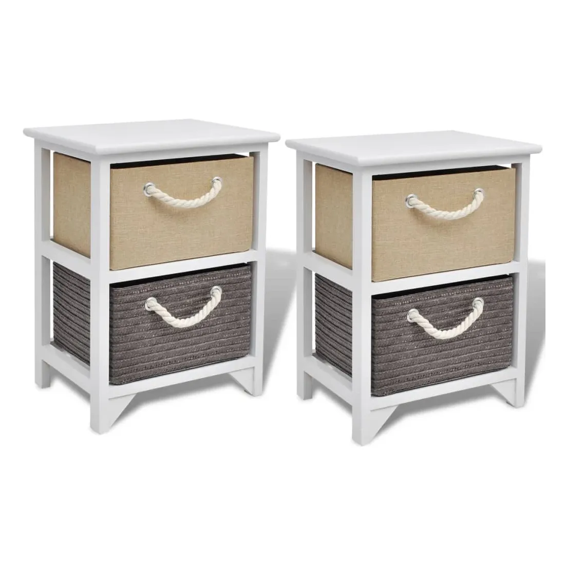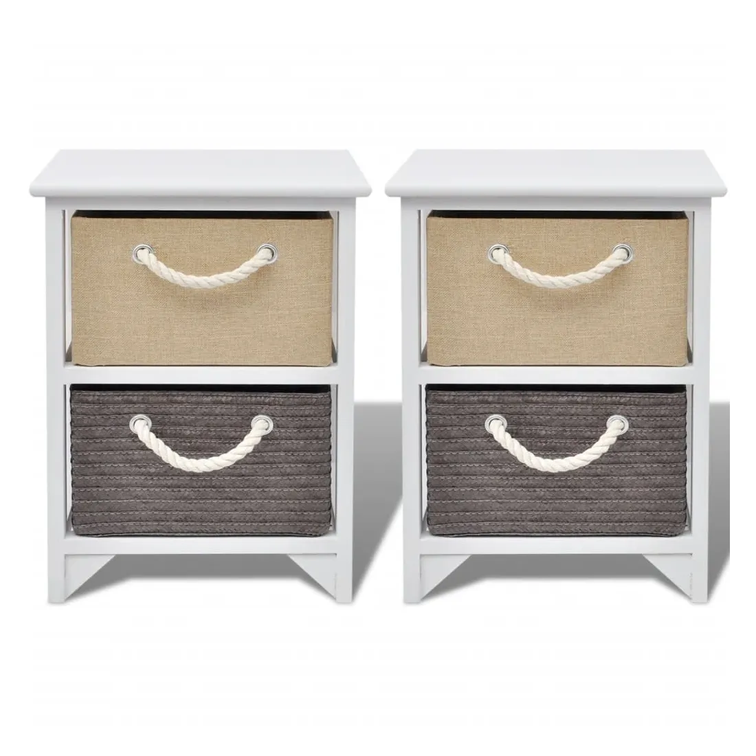 Ajoutez une touche de charme rustique à votre maison avec ces tables de chevet simples mais élégantes ! Chaque table de chevet est dotée de 2 tiroirs qui fournissent amplement d'espace pour garder des petits articles rangés et à portée de main. Les tiroirs avec poignée à cordon ajoutent du style rustique. Elles peuvent être utilisées aussi comme support de téléphone, armoire latérale, petite armoire, table de chevet, armoire de rangement, table de nuit, table auxiliaire ou armoire auxiliaire. La livraison comprend 2 tables de chevet.