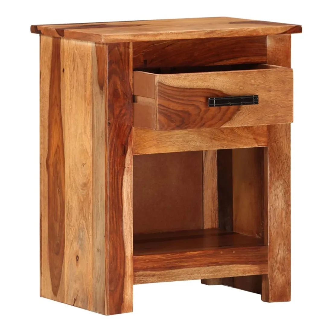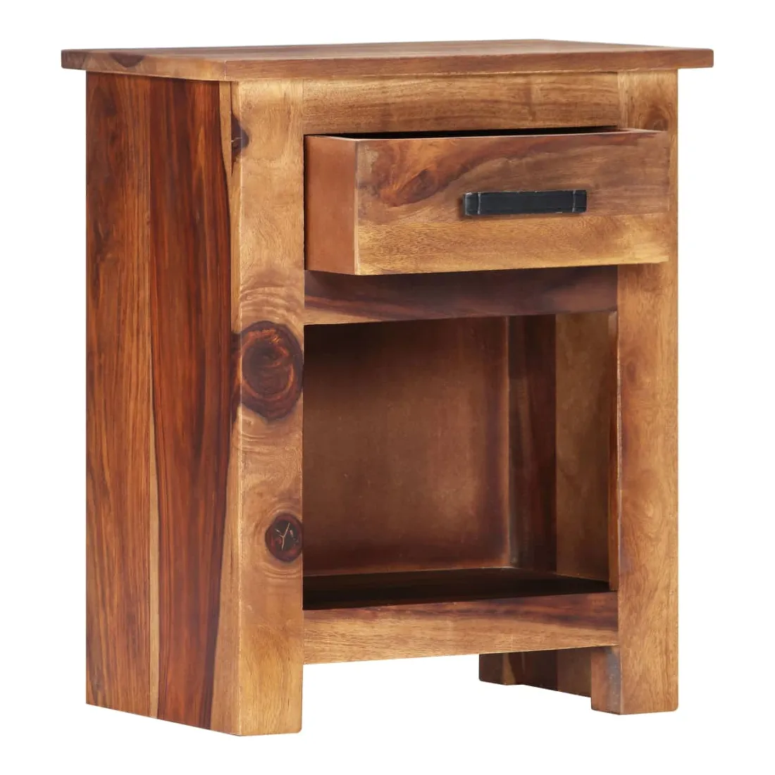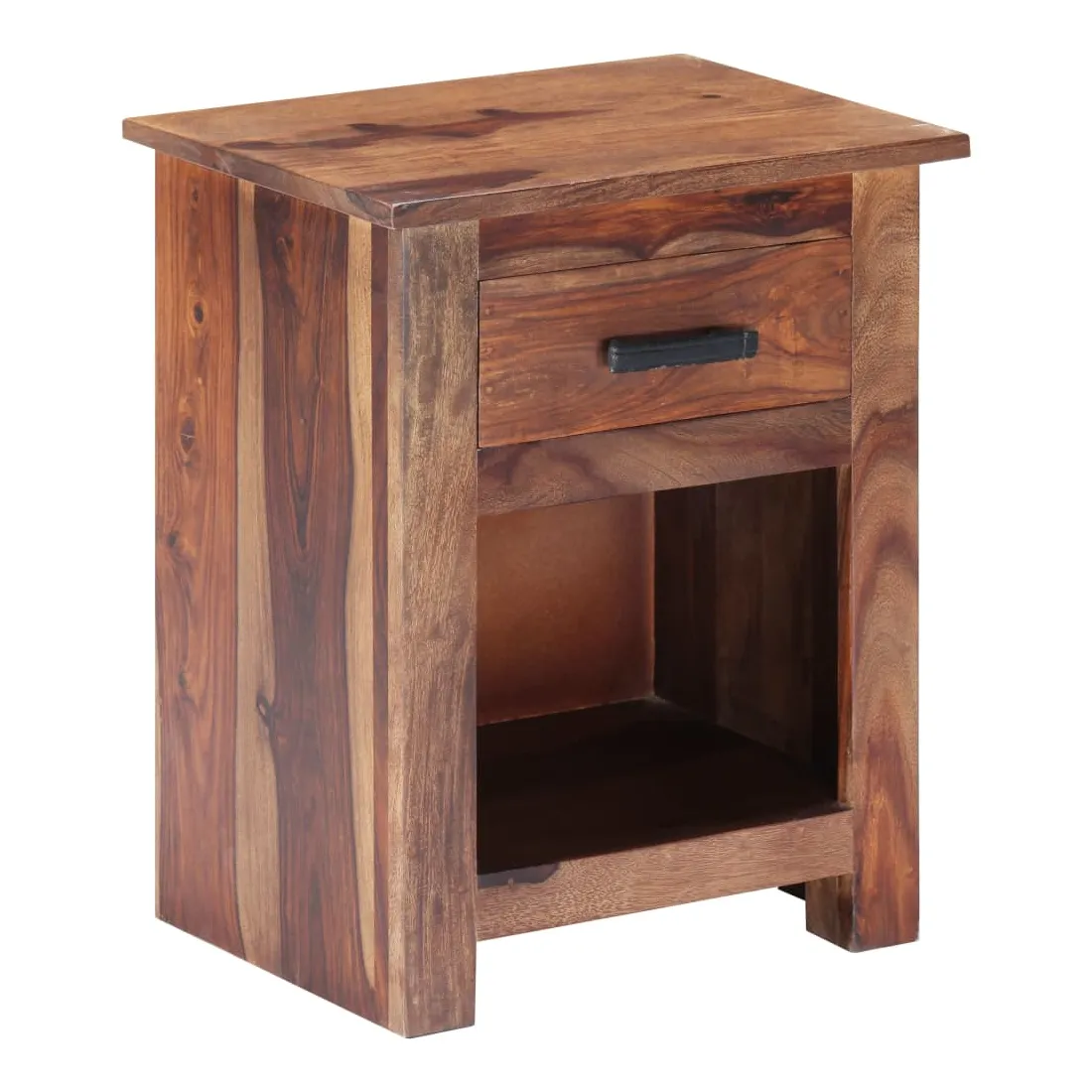 Avec un design rustique et tendance, cette table de chevet en bois solide ajoutera une touche décorative et pratique à votre décoration. La table de chevet est en bois massif, qui est durable et esthétique. De plus, il ne se déforme pas et ne se fend pas et présente une résistance naturelle à la pourriture. En conséquence, cette table de chevet est extrêmement stable, durable et accrocheur. Le savoir-faire exquis et les grains de bois esthétiquement attrayants rendent chaque meuble unique et légèrement différent l'un de l'autre. De plus, conçu avec 1 tiroir et 1 étagère, la table de chevet offre suffisamment d'espace de rangement pour garder vos magazines, livres, télécommandes et appareils multimédia bien organisés et à portée de main. Il est facile à assembler. Remarque importante : les couleurs et les grains peuvent varier d'une pièce à l'autre, ce qui rend chacune de nos tables de chevet unique. La livraison est aléatoire, ce qui garantit l'exclusivité et l'individualité de votre produit.