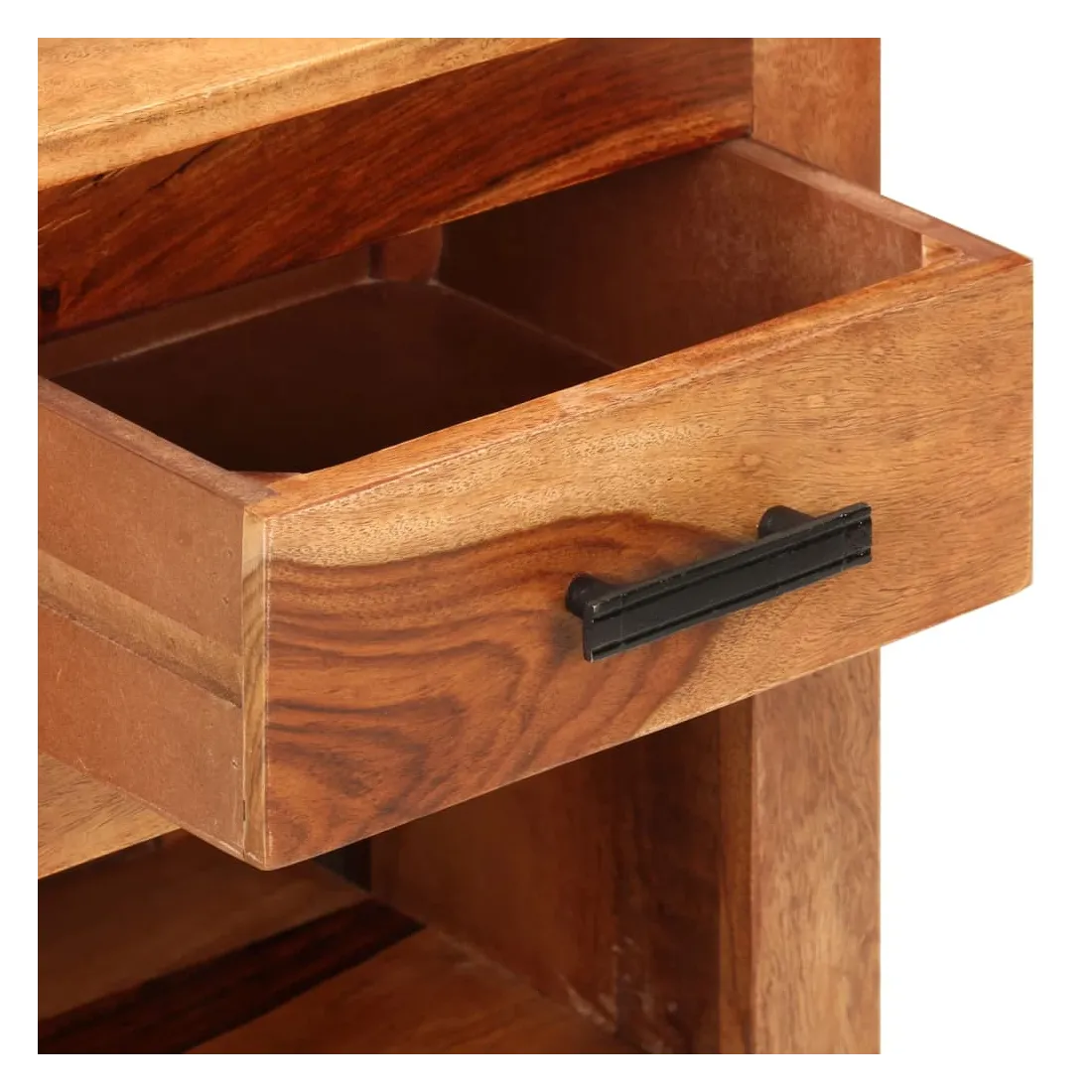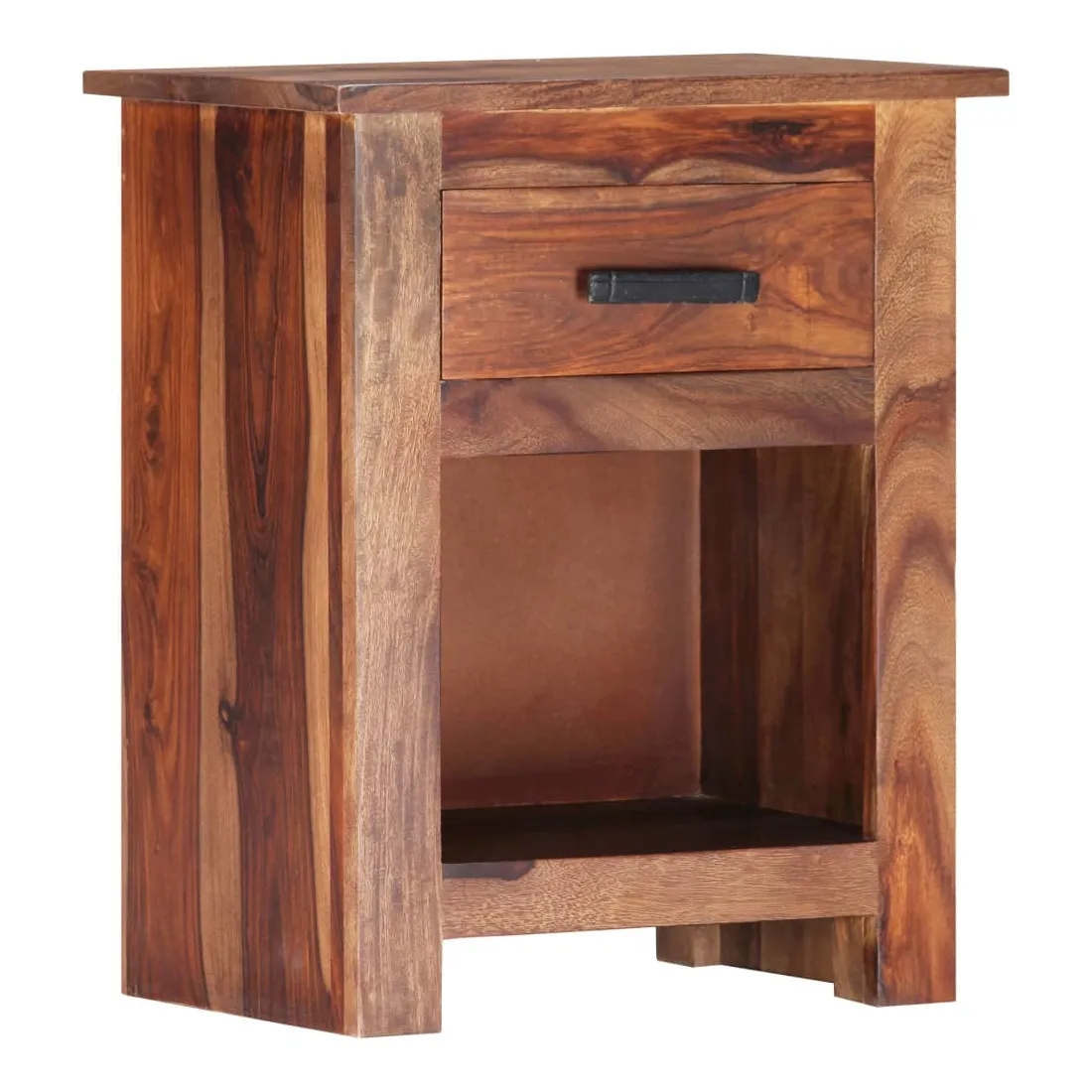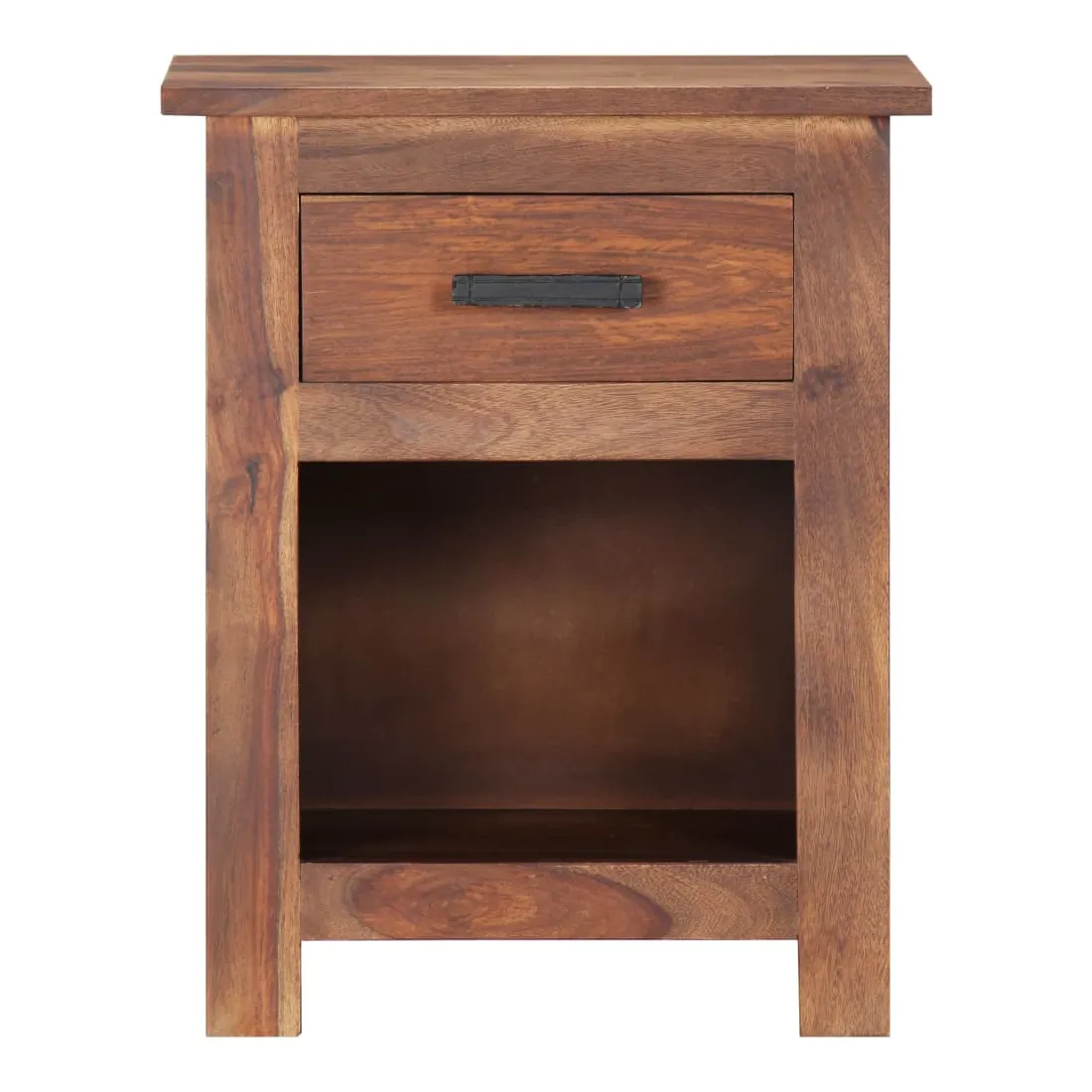 Avec un design rustique et tendance, cette table de chevet en bois solide ajoutera une touche décorative et pratique à votre décoration. La table de chevet est en bois massif, qui est durable et esthétique. De plus, il ne se déforme pas et ne se fend pas et présente une résistance naturelle à la pourriture. En conséquence, cette table de chevet est extrêmement stable, durable et accrocheur. Le savoir-faire exquis et les grains de bois esthétiquement attrayants rendent chaque meuble unique et légèrement différent l'un de l'autre. De plus, conçu avec 1 tiroir et 1 étagère, la table de chevet offre suffisamment d'espace de rangement pour garder vos magazines, livres, télécommandes et appareils multimédia bien organisés et à portée de main. Il est facile à assembler. Remarque importante : les couleurs et les grains peuvent varier d'une pièce à l'autre, ce qui rend chacune de nos tables de chevet unique. La livraison est aléatoire, ce qui garantit l'exclusivité et l'individualité de votre produit.