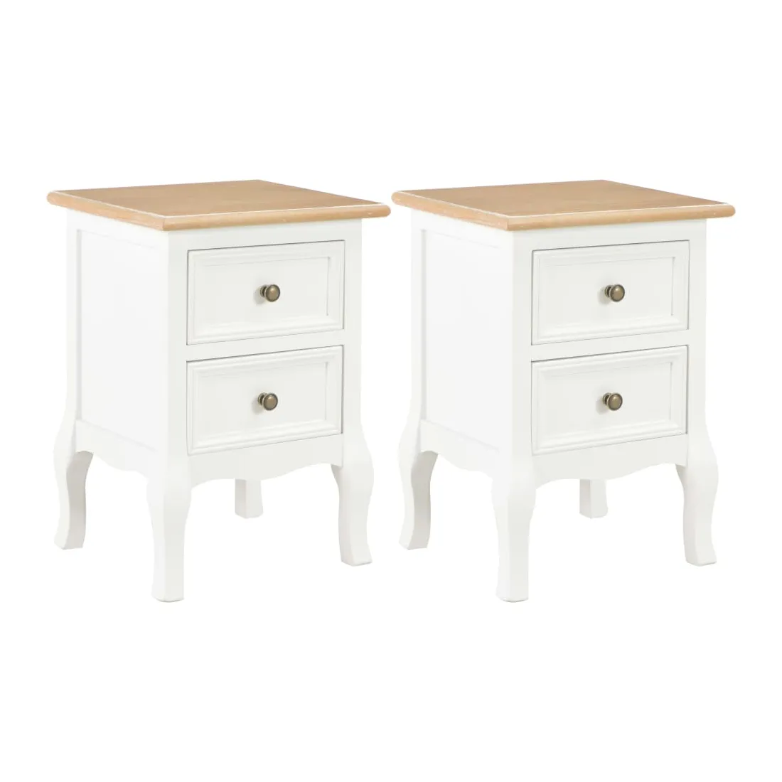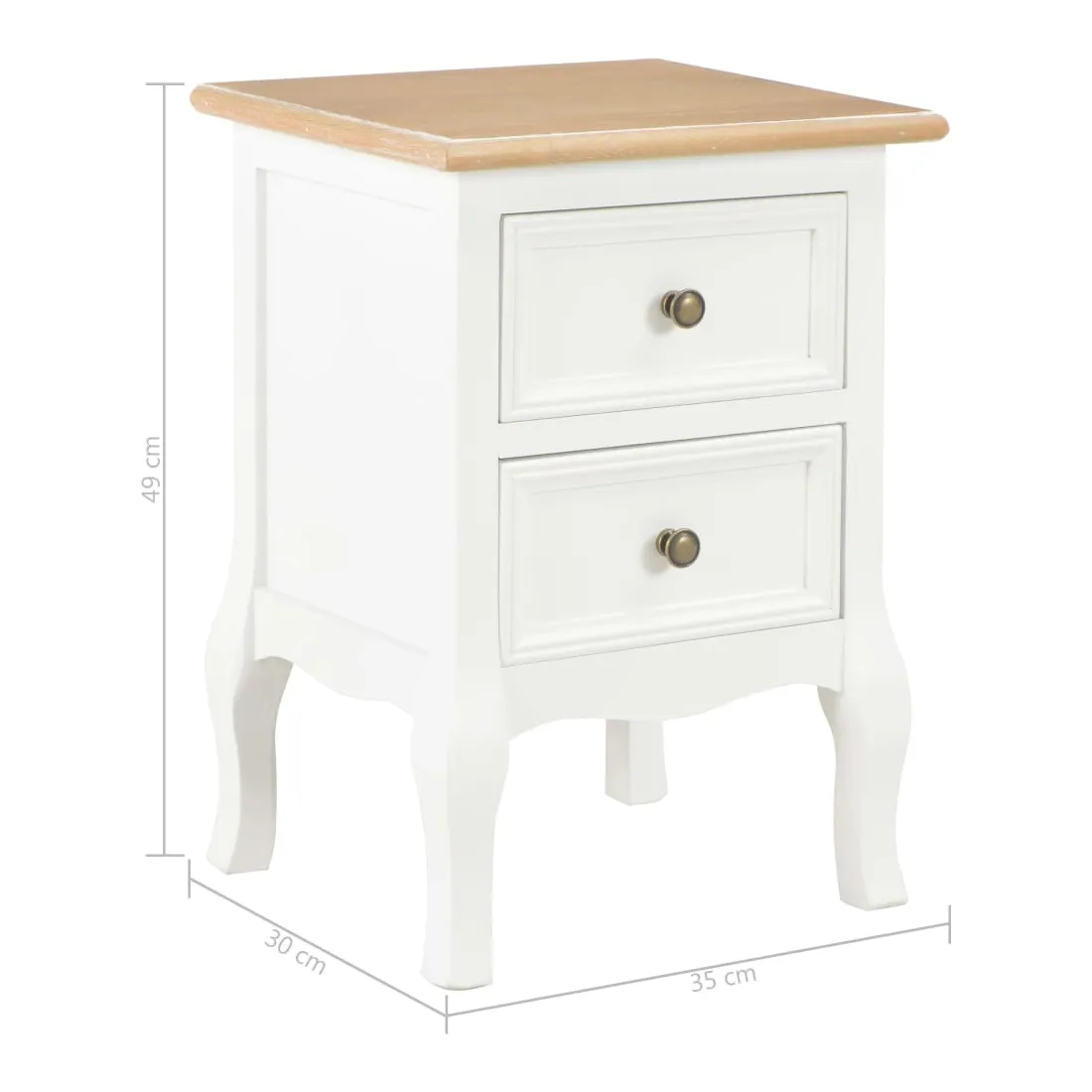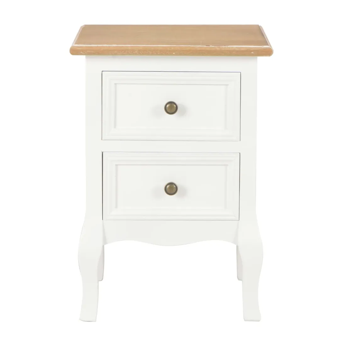 Ajoutez une touche d'élégance à votre décoration intérieure avec notre table de chevet en style français ! Elle peut également être utilisée comme support de téléphone à côté de votre canapé. Le meuble compact dispose de 2 tiroirs fonctionnant sans à-coups, offrant un grand espace pour garder vos petits objets rangés et à portée de main. Fabriquée en bois massif et en MDF, la table de chevet est extrêmement durable et facile à nettoyer. La livraison comprend 2 tables de chevet.