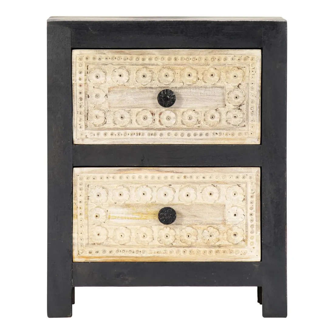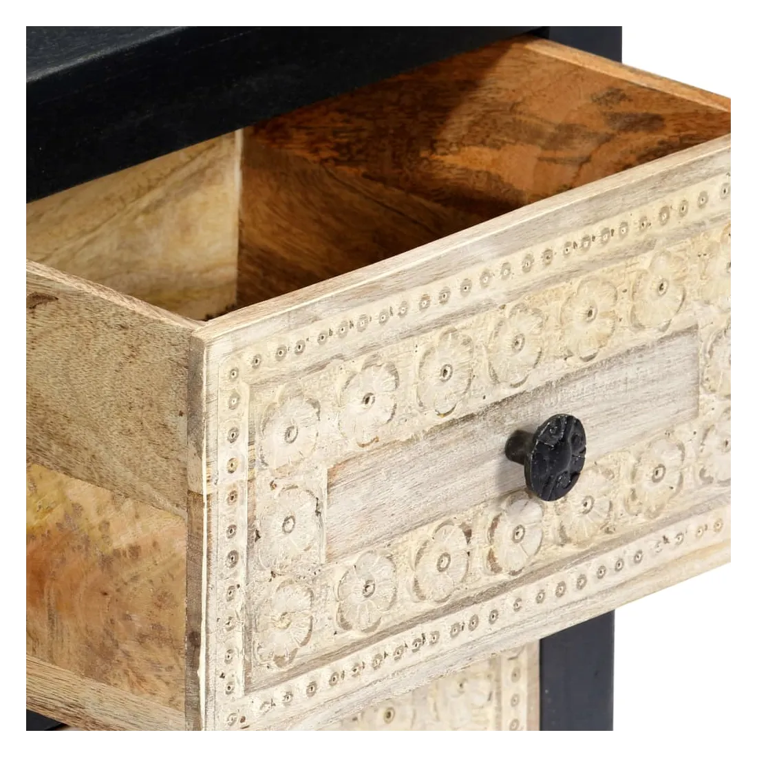 - 2 tiroirs avec motif sculpté à la main