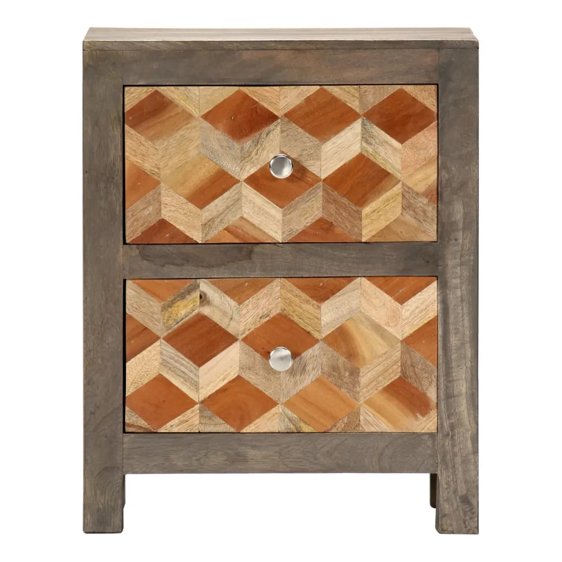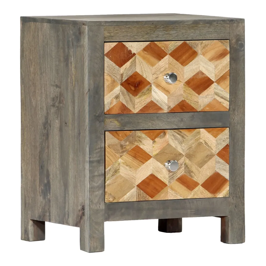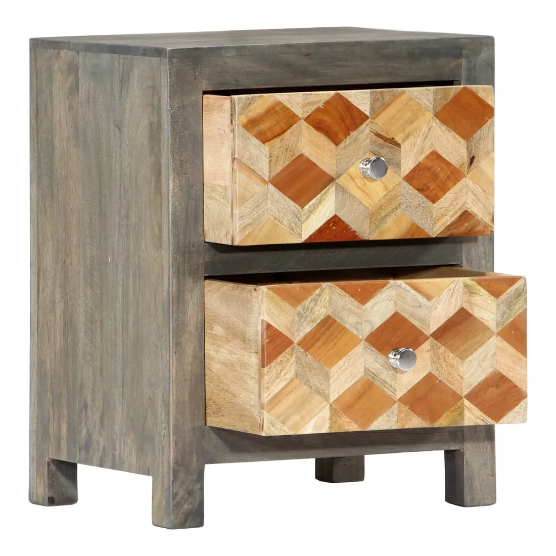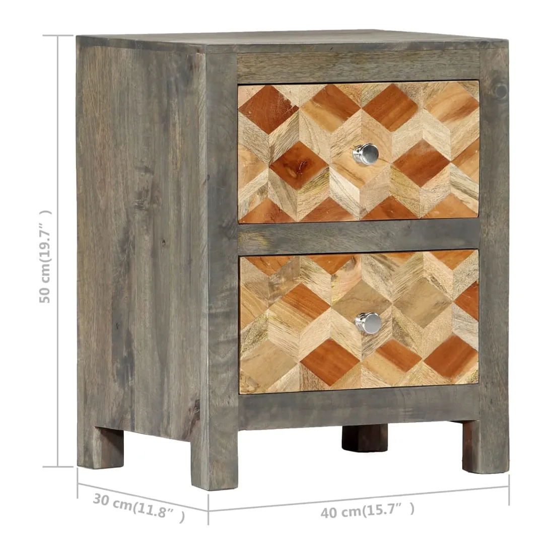 Table de chevet Gris 40x30x50 cm Bois de manguier massif