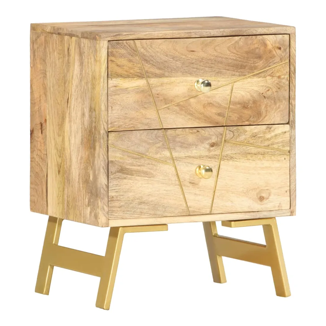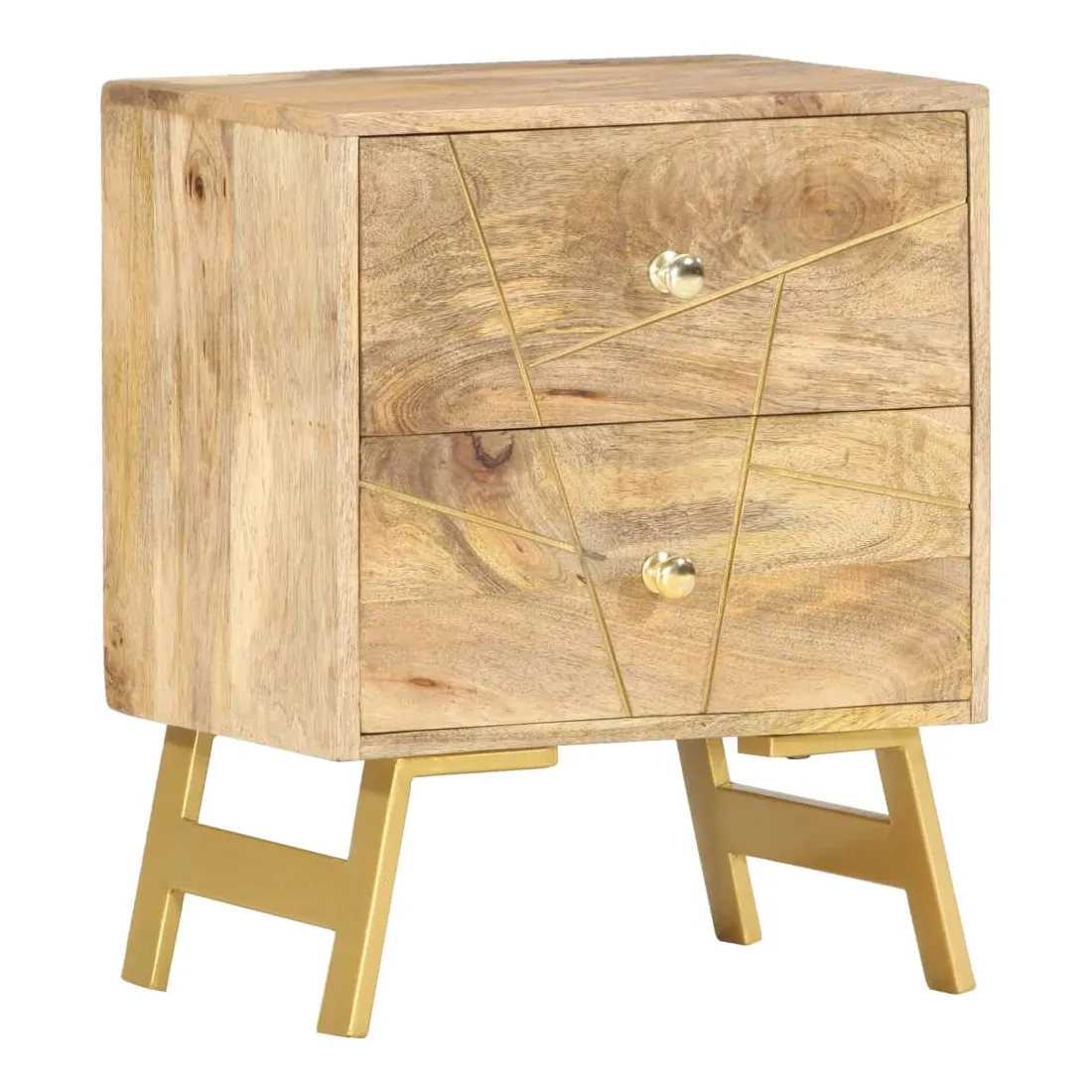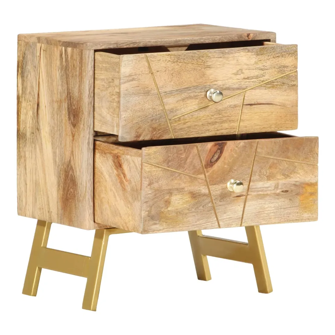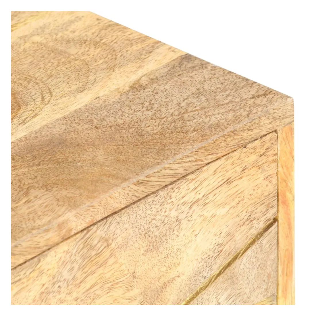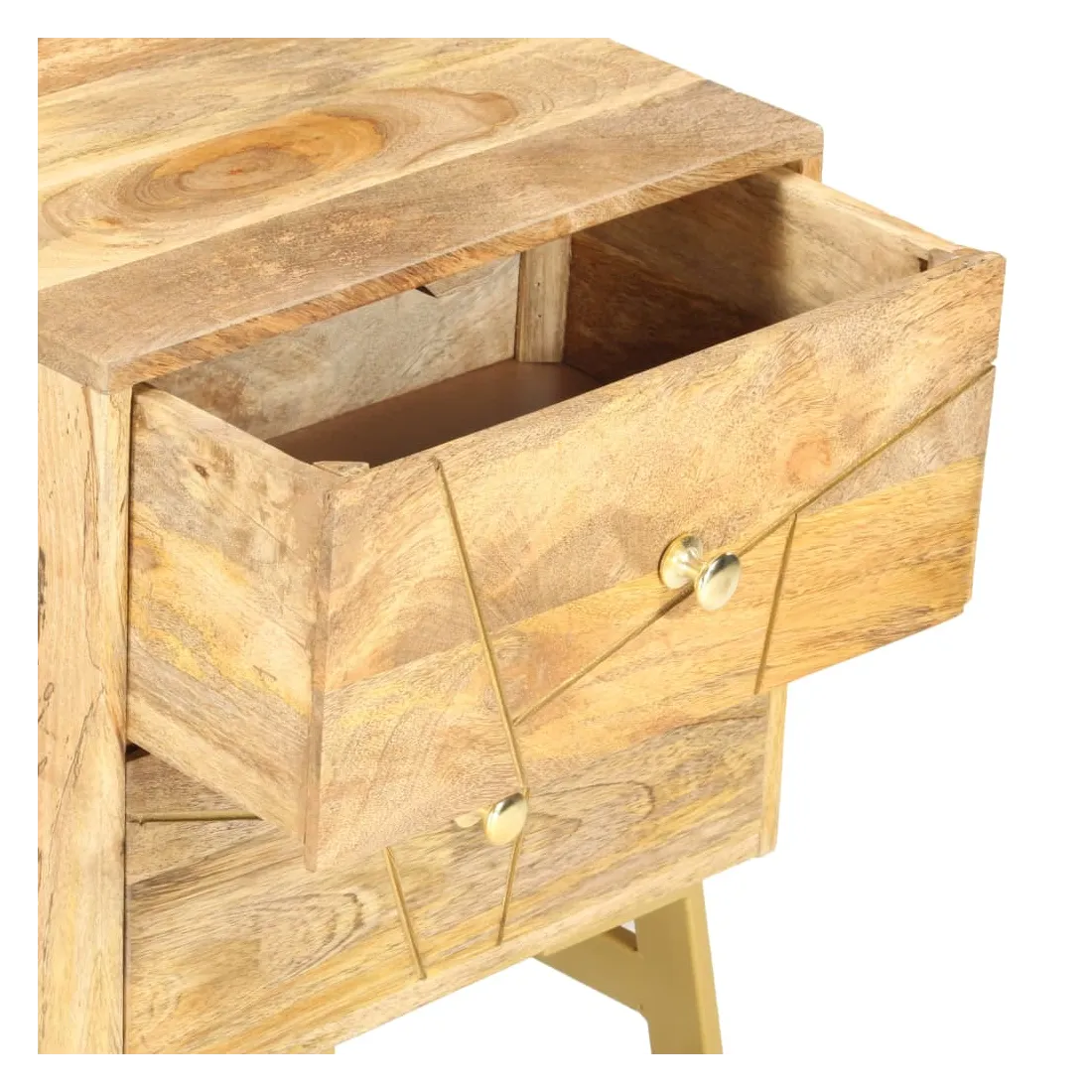 Donnez un air de charme rustique à votre intérieur avec notre élégante table de chevet ! Elle sera un supplément intemporel à votre espace de vie. Fabriquée en bois de manguier massif, la table de chevet a reçu une belle finition par polissage et laquage, ce qui lui confère un look raffiné. Le bois de manguier est un bois dur dense et robuste qui présente des belles stries et des contours bruns ou dorés à sa surface. De plus, les 2 tiroirs offrent un espace de rangement pour garder les petits objets organisés et à portée de main. Note importante : L'artisanat exquis et les magnifiques grains de bois massif de manguier rendent chaque table de nuit unique et légèrement différent l'un de l'autre. La livraison est aléatoire, ce qui garantit l'exclusivité et l'individualité de votre produit. C'est facile à assembler.ATTENTION: afin d'éviter qu'il ne bascule, ce produit doit être utilisé avec le dispositif de fixation murale fourni.