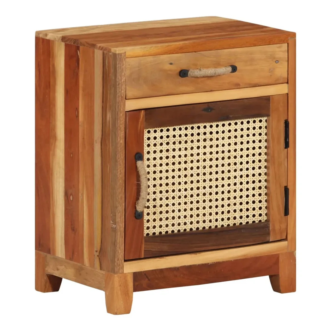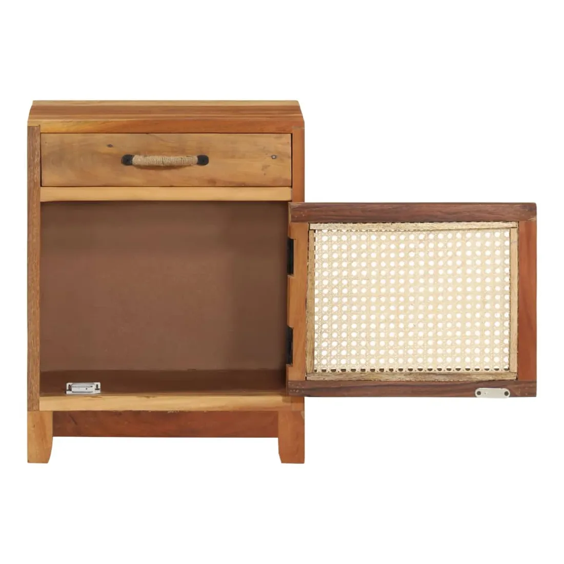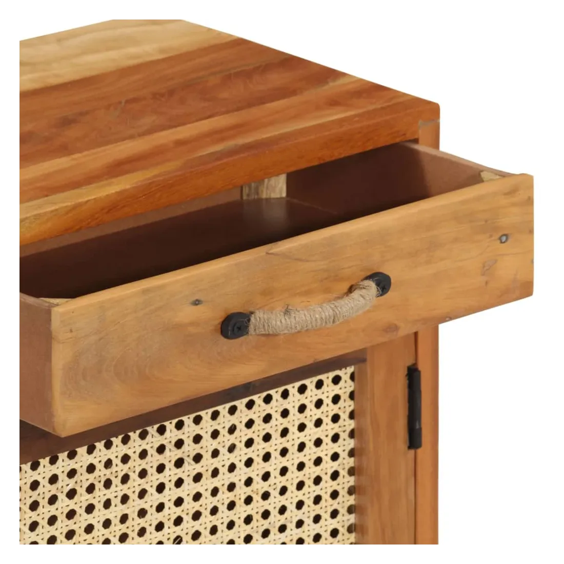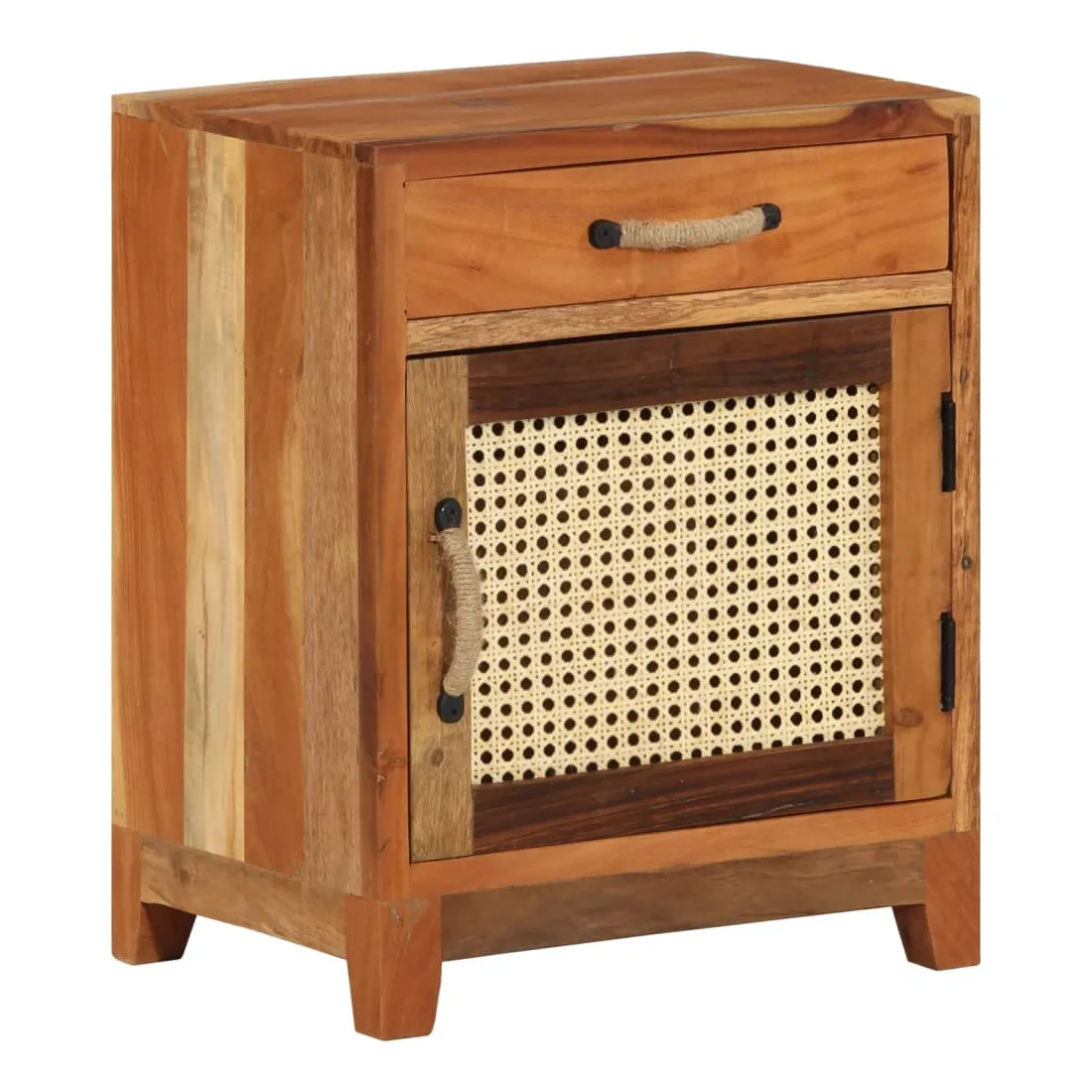 Notre table de chevet en bois de style classique dégage un charme vintage. C'est sûrement un supplément accrocheur à votre intérieur. L'armoire de lit est faite de bois de récupération solide, provenant des poutrelles, des planchers et des poutres de support d'anciens bâtiments démolis. De plus, elle peut se composer de différents types de bois tels que le teck, le bois dur, le bois tropical, le bois de manguier, etc. Cela signifie que le bois de récupération conserve les caractéristiques de ces différents types de bois. Le bois de récupération est déjà vieilli, patiné et séché. Par conséquent, ils ne rétrécissent pas et ne se plient pas. La porte avant est en canne naturelle. Cette table de chevet est entièrement faite à la main, et les jolis grains de bois rendent chaque meuble distinctif et légèrement différent l'un de l'autre. Chaque étape du processus est réalisée avec le plus grand soin, que ce soit le polissage, la peinture ou le laquage. De plus, cette armoire de rangement offre un espace pour ranger vos livres, blocs-notes, stylos, ainsi que d'autres bibelots. La table de chevet est également facile à assembler. Remarque importante : la couleur peut varier d'une pièce à l'autre, ce qui rend chaque pièce unique. La livraison est également aléatoire.
