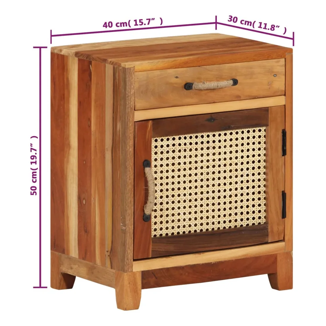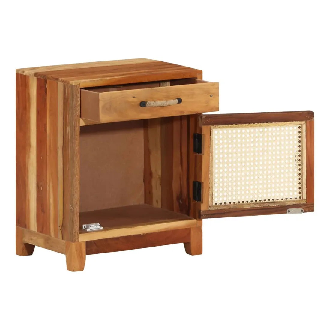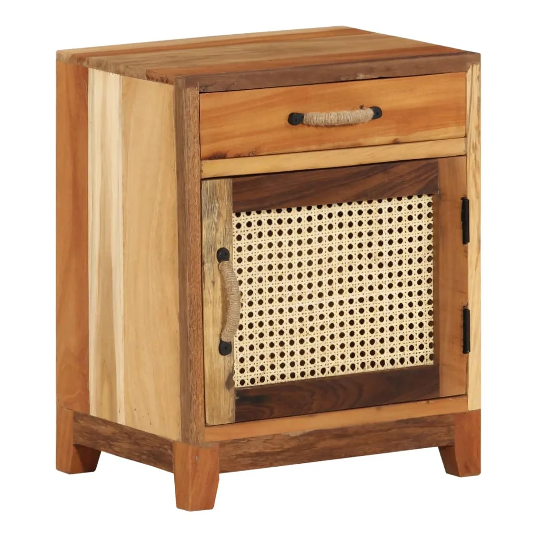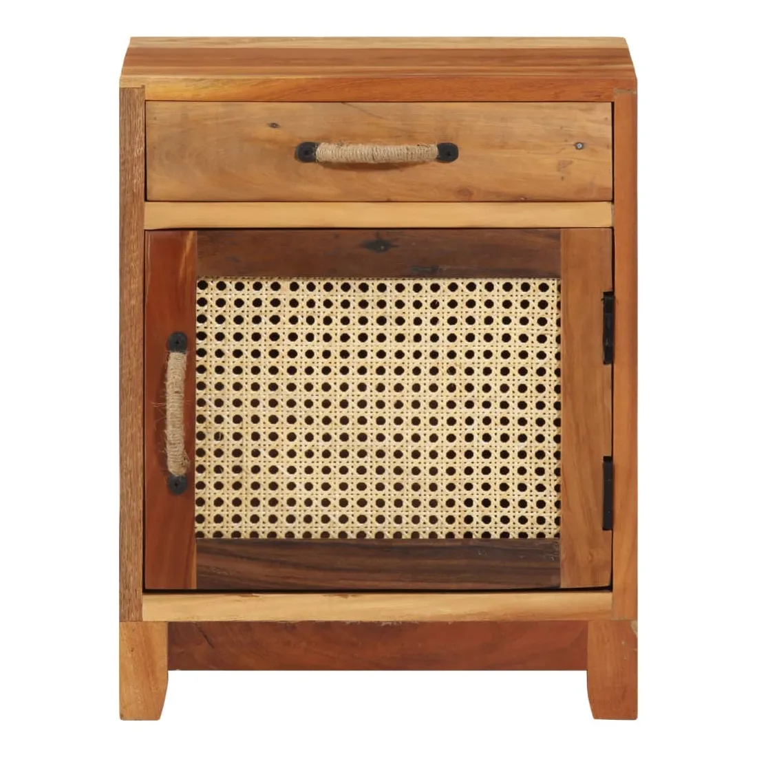 Notre table de chevet en bois de style classique dégage un charme vintage. C'est sûrement un supplément accrocheur à votre intérieur. L'armoire de lit est faite de bois de récupération solide, provenant des poutrelles, des planchers et des poutres de support d'anciens bâtiments démolis. De plus, elle peut se composer de différents types de bois tels que le teck, le bois dur, le bois tropical, le bois de manguier, etc. Cela signifie que le bois de récupération conserve les caractéristiques de ces différents types de bois. Le bois de récupération est déjà vieilli, patiné et séché. Par conséquent, ils ne rétrécissent pas et ne se plient pas. La porte avant est en canne naturelle. Cette table de chevet est entièrement faite à la main, et les jolis grains de bois rendent chaque meuble distinctif et légèrement différent l'un de l'autre. Chaque étape du processus est réalisée avec le plus grand soin, que ce soit le polissage, la peinture ou le laquage. De plus, cette armoire de rangement offre un espace pour ranger vos livres, blocs-notes, stylos, ainsi que d'autres bibelots. La table de chevet est également facile à assembler. Remarque importante : la couleur peut varier d'une pièce à l'autre, ce qui rend chaque pièce unique. La livraison est également aléatoire.