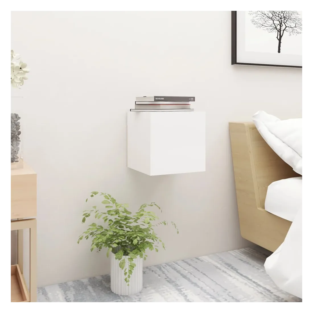 Cette table de chevet est certainement conçue pour être un point de mire de votre pièce avec un design tendance mais pratique. L’armoire latérale est fixée au mur, ce qui en fait un supplément intemporel à votre maison. Elle dispose d’un grand compartiment qui en font un endroit idéal pour garder vos magazines, livres, télécommandes et autres petits articles bien organisés et à portée de main. Cette table d'appoint peut être assemblée avec la porte ouverte à gauche ou à droite. Elle est facile à nettoyer avec un chiffon humide.