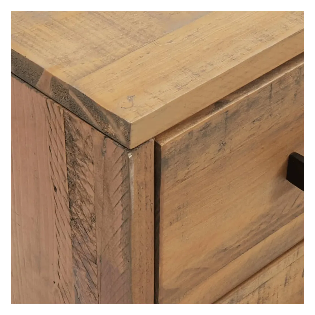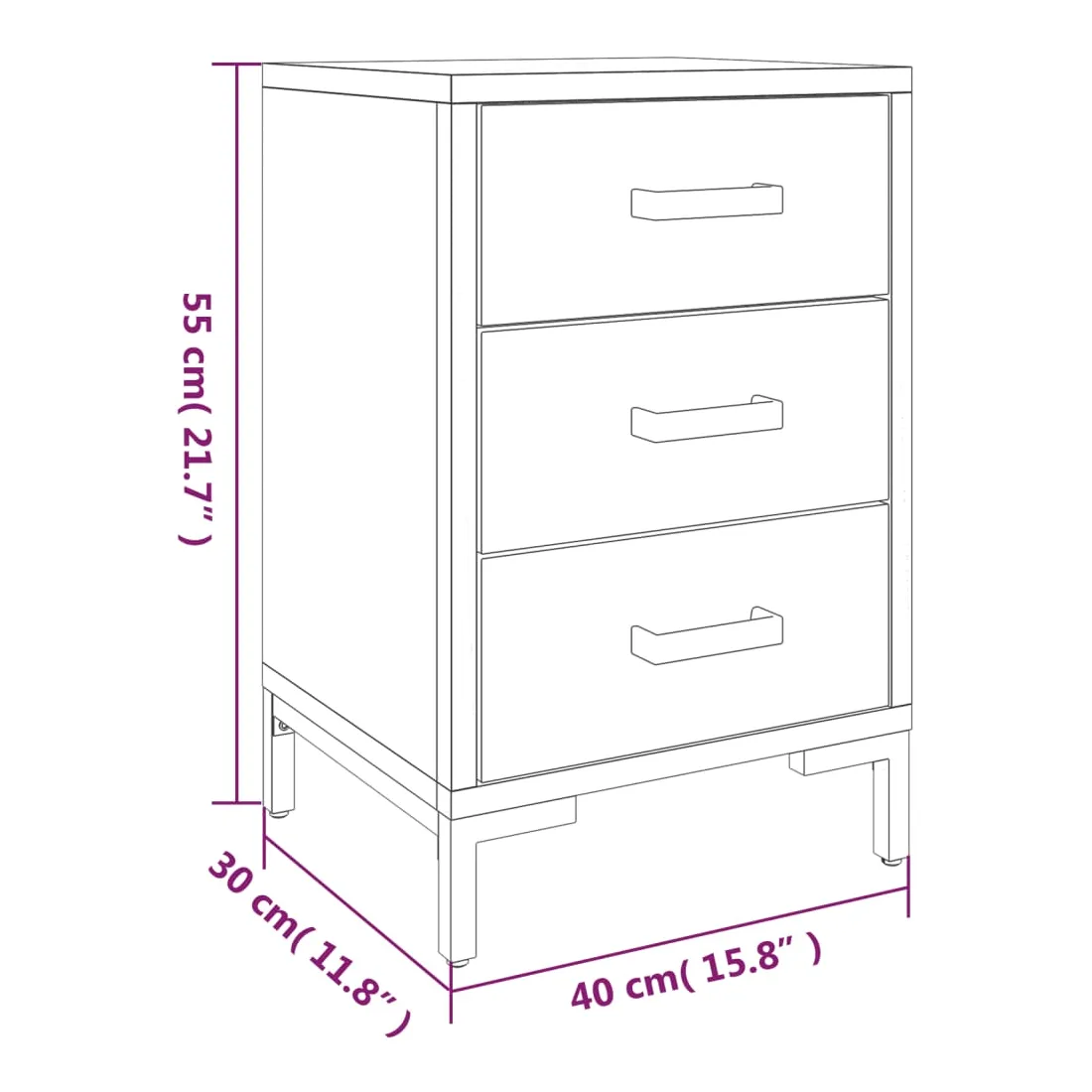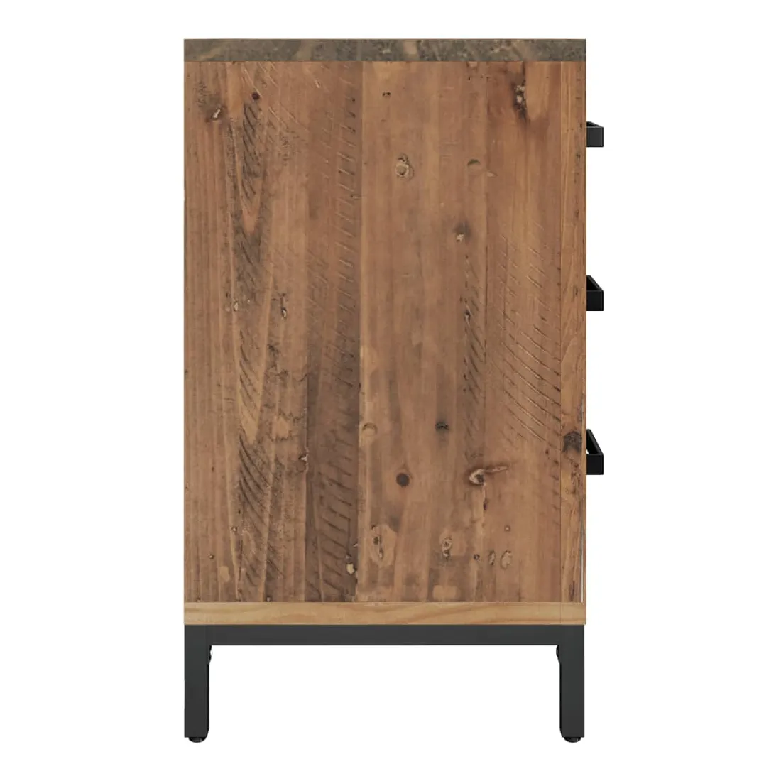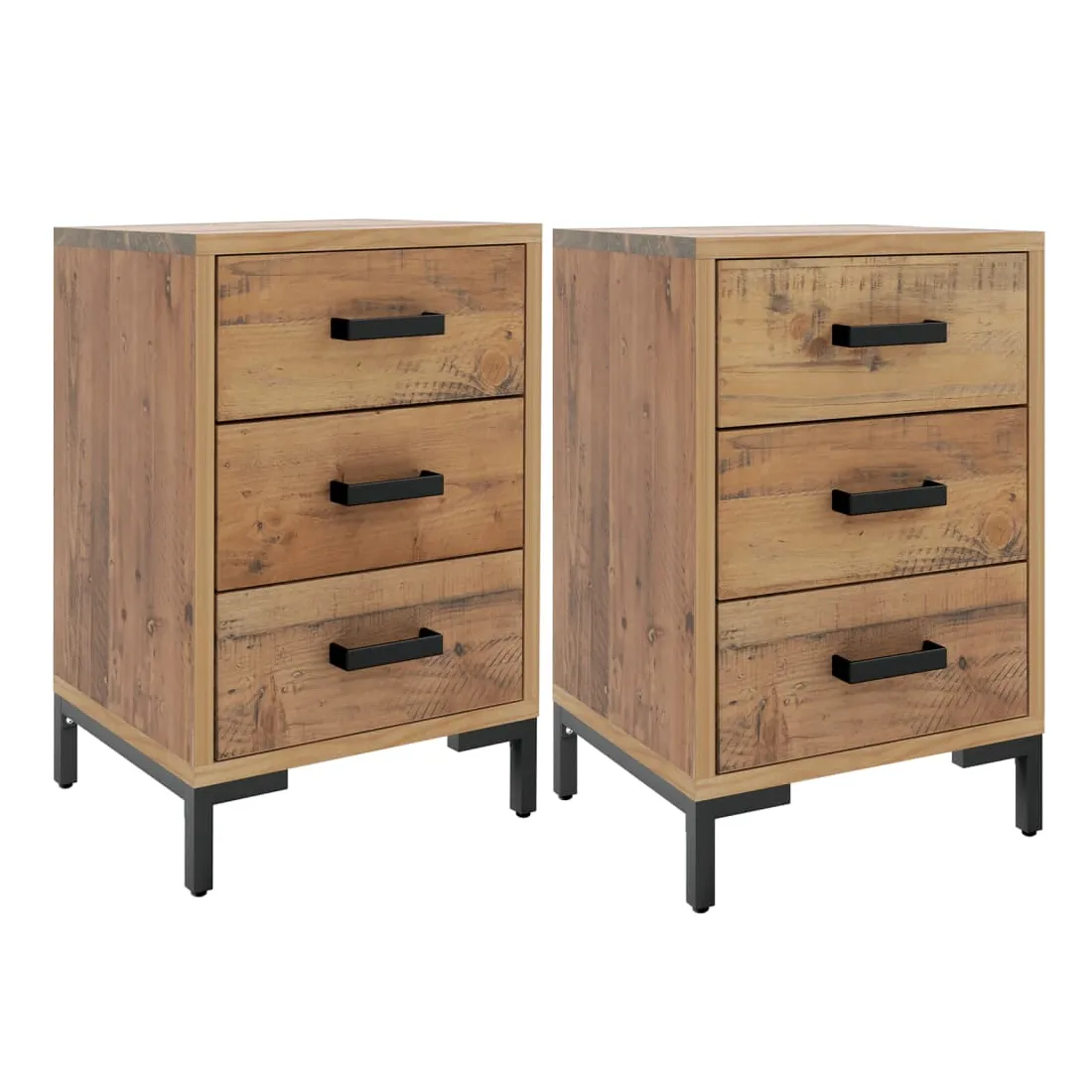 Ajoutez une touche vintage à votre pièce avec la table de chevet ! Elle est un supplément pratique et décoratif à votre maison. Matériau durable : le bois de pin massif est un matériau naturel magnifique. Le bois de pin a un grain droit et les nœuds donnent au matériau son aspect caractéristique et rustique.Grand espace de rangement : l'armoire latérale est conçue avec 3 tiroirs pour garder les choses organisées et à portée de main.Dessus robuste : l'armoire latérale est dotée d'un dessus robuste, idéal pour placer vos tasses, livres et autres objets décoratifs.Pieds en métal : les pieds en métal de ce meuble de chambre à coucher assurent la solidité et la stabilité. Remarque :Chaque produit est livré avec un manuel de montage dans la boîte pour un montage facile.Afin d'éviter qu'il ne bascule, ce produit doit être utilisé avec le dispositif de fixation murale fourni.