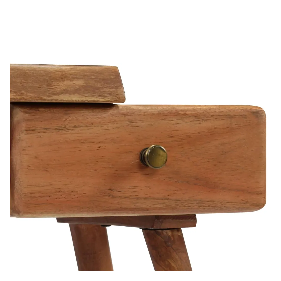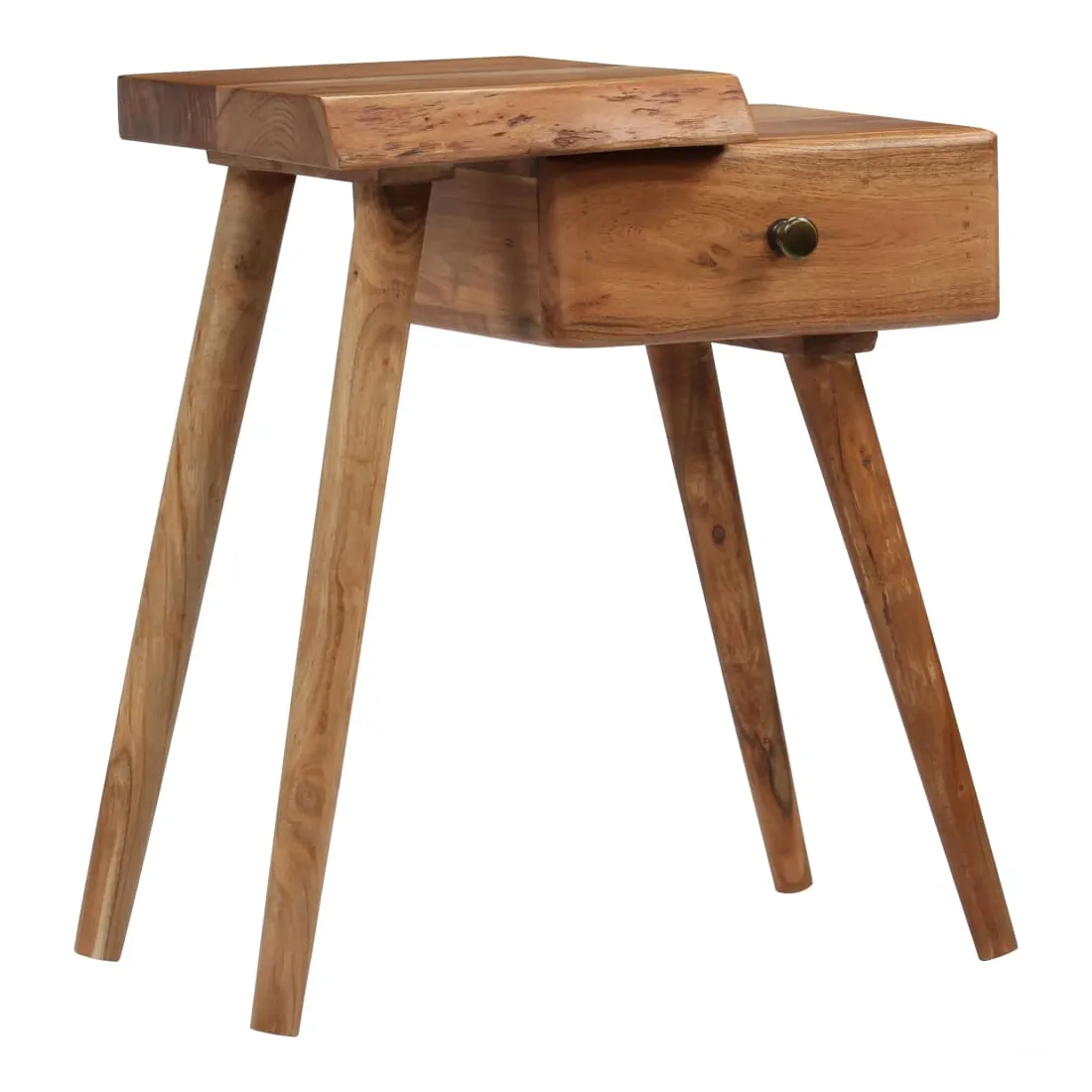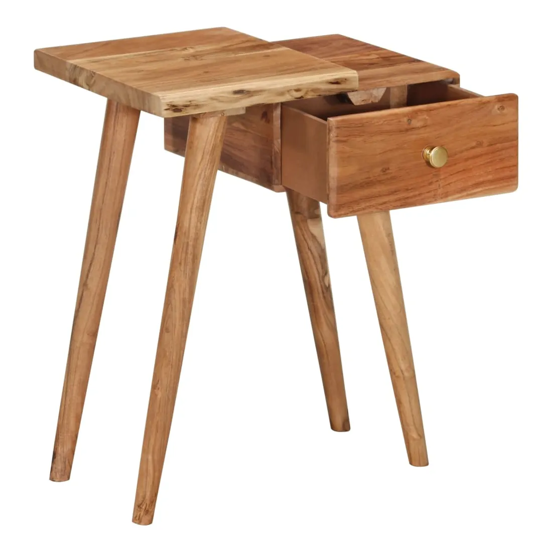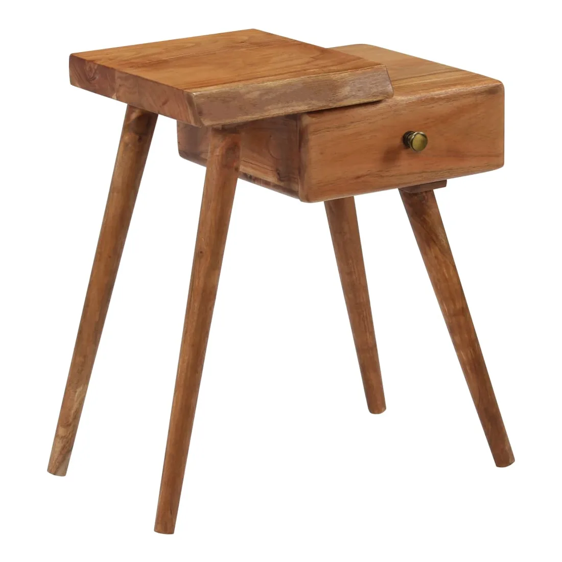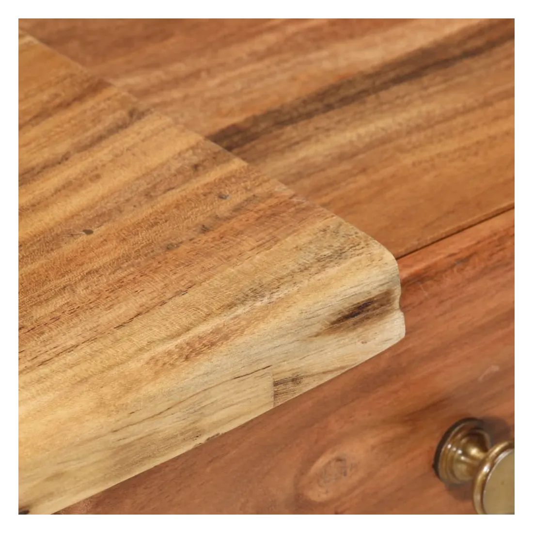 Notre table de chevet rétro à bord assorti ajoutera une touche intemporelle à la décoration de votre chambre à coucher ! Fabriquée en bois d'acacia massif, cette table est durable et stable et ajoutera une touche de charme rustique à votre intérieur. La table présente un design unique avec son dessus et son tiroir superposé, qui souligne son style naturel et vintage. Le tiroir offre un espace de rangement pour garder vos divers petits objets bien organisés. Chaque étape du processus de fabrication est réalisée avec le plus grand soin, que ce soit le polissage et le laquage. L'assemblage est facile. Remarque importante : les couleurs et les grains peuvent varier d'une pièce à l'autre, ce qui rend chaque pièce unique et légèrement différente l'une de l'autre ; la livraison est aléatoire, ce qui garantit l'exclusivité et l'individualité de votre produit.