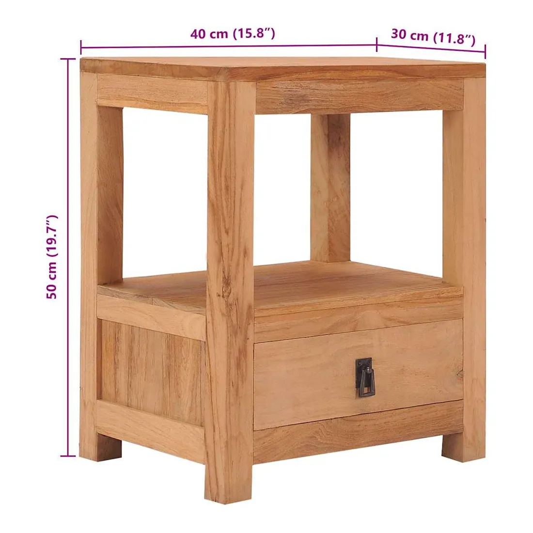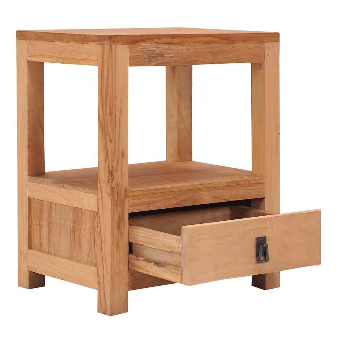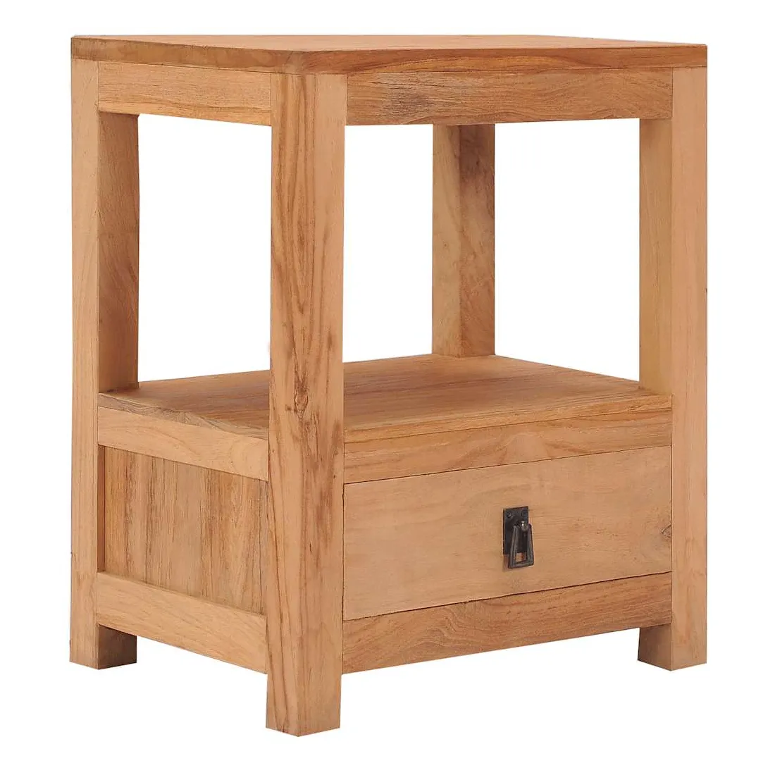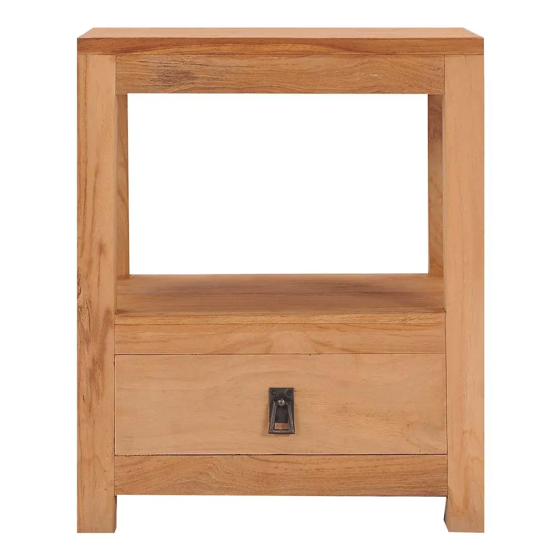 Cette table de chevet en bois de style colonial dégage un charme rustique et s'intègre parfaitement à votre intérieur. La table de nuit est fabriquée en bois de teck massif, ce qui la rend très durable et résistante. Le dessus robuste est idéal pour ranger un réveil, une lampe de lecture, des livres, etc, ou pour exposer des cadres photo ou d'autres objets décoratifs. Le tiroir et l'étagère offrent de l'espace pour garder toutes sortes de petits objets organisés et à portée de main. L'article est déjà assemblé ; aucun assemblage n’est requis.