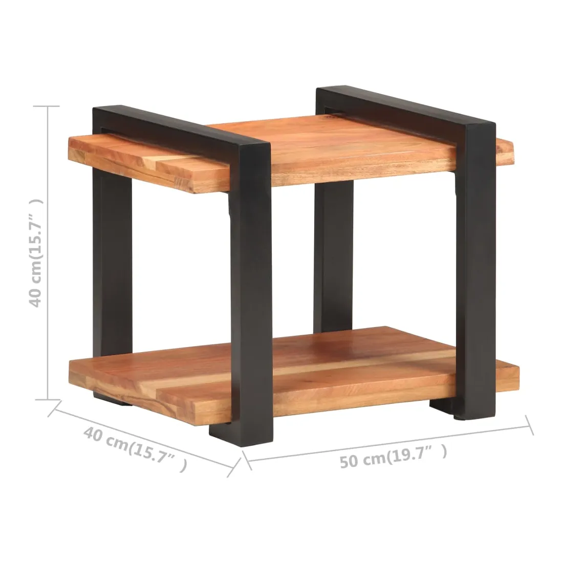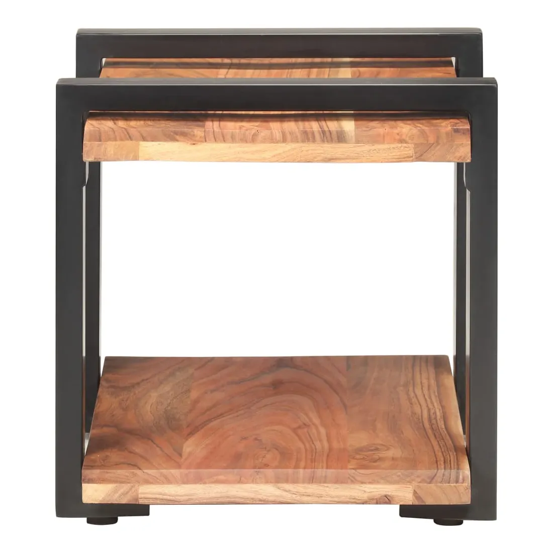 - Matériau : bois d'acacia massif avec une finition naturelle, fer avec revêtement enduit de poudre noir