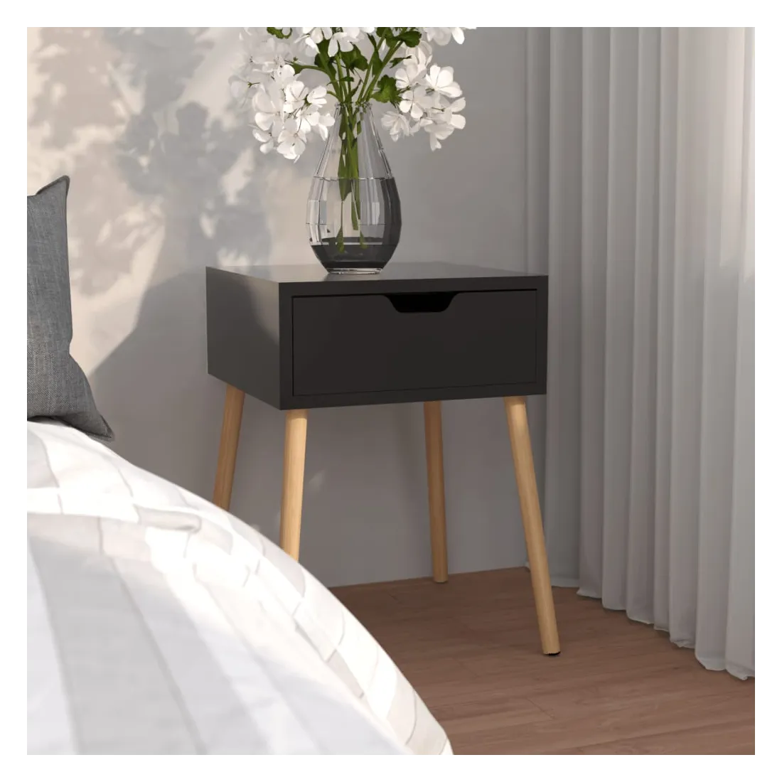 Cette table de chevet dégage une touche de charme moderne et constitue un excellent supplément à la décoration actuelle de votre pièce. La table de chevet est fabriquée en bois d'ingénierie, ce qui la rend durable et facile à nettoyer. En tant qu'armoire universelle, vous pouvez placer vos magazines, livres et décors sur le dessus et à portée de main. Avec un tiroir, les télécommandes et autres petits objets peuvent être bien organisés. Améliorez votre intérieur avec cette élégante table d'appoint !