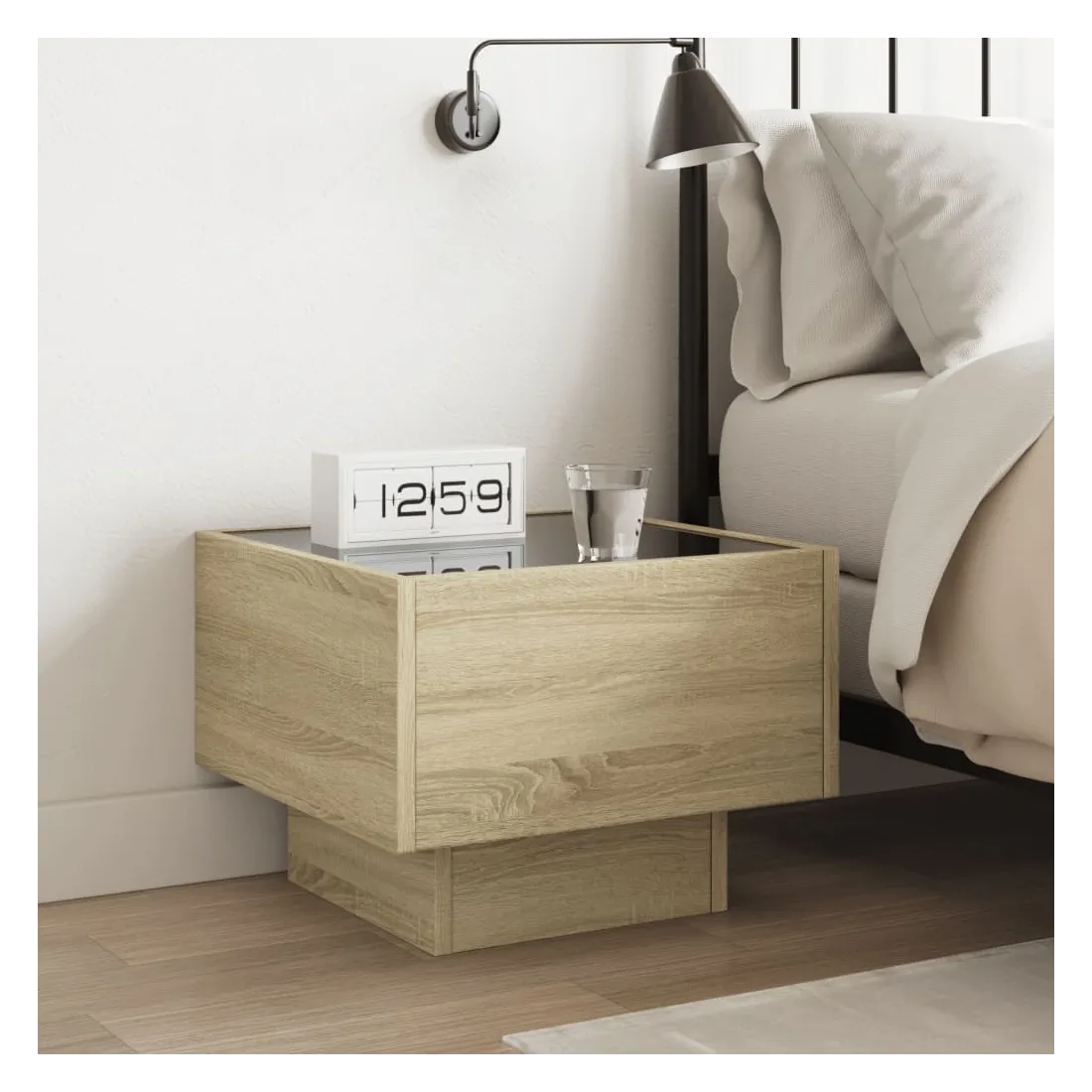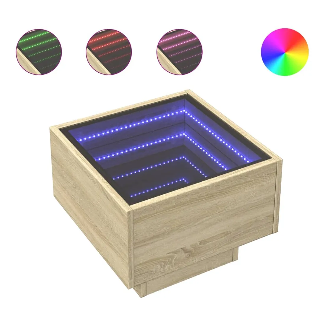 Cette table de chevet avec un miroir à LED infini constitue un ajout intemporel à votre décoration intérieure. Matériau stable et durable : le bois d'ingénierie est un matériau durable et stable dont la surface lisse résiste à l'humidité, à la déformation et au fendillement, ce qui en fait un choix fiable pour une grande variété de projets.Lampes LED RVB pour une ambiance agréable : cette table est dotée de lampes LED qui peuvent être facilement réglées pour créer un spectacle lumineux personnalisé. Vous pouvez personnaliser les modes, les couleurs et la luminosité pour améliorer l'ambiance de votre espace intérieur.Dessus de table stable et robuste : le dessus de table robuste est idéal pour placer vos objets décoratifs ou tout autre objet nécessaire à portée de main. Bon à savoir : Ce produit est doté d'un connecteur USB qui nécessite une source d'alimentation USB de 5V certifiée (non incluse).
