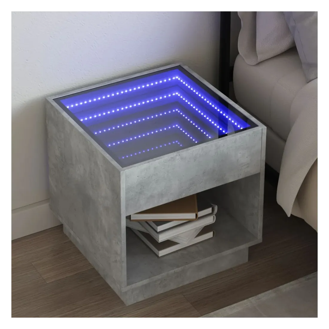 Cette table de chevet avec un miroir à LED infini constitue un ajout intemporel à votre décoration intérieure. Matériau stable et durable : le bois d'ingénierie est un matériau durable et stable dont la surface lisse résiste à l'humidité, à la déformation et au fendillement, ce qui en fait un choix fiable pour une grande variété de projets.Lampes LED RVB pour une ambiance agréable : cette table est dotée de lampes LED qui peuvent être facilement réglées pour créer un spectacle lumineux personnalisé. Vous pouvez personnaliser les modes, les couleurs et la luminosité pour améliorer l'ambiance de votre espace intérieur.Dessus de table stable et robuste : le dessus de table robuste est idéal pour placer vos objets décoratifs ou tout autre objet nécessaire à portée de main. Bon à savoir : Ce produit est doté d'un connecteur USB qui nécessite une source d'alimentation USB de 5V certifiée (non incluse).