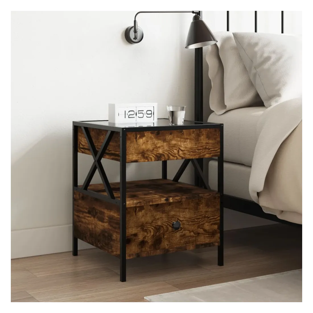 - Matériau : bois d'ingénierie, verre et acier