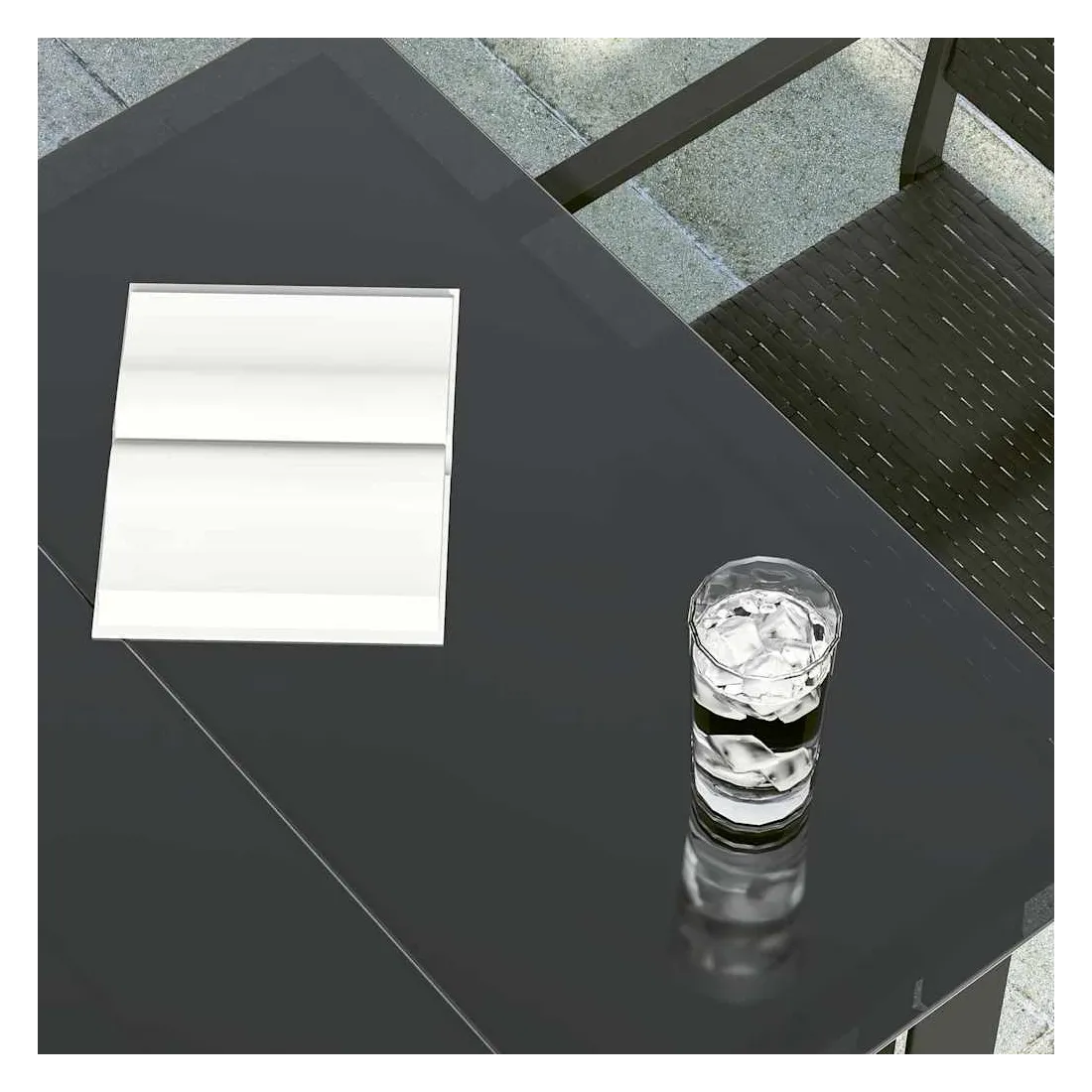 - Matériau : acier enduit de poudre, verre