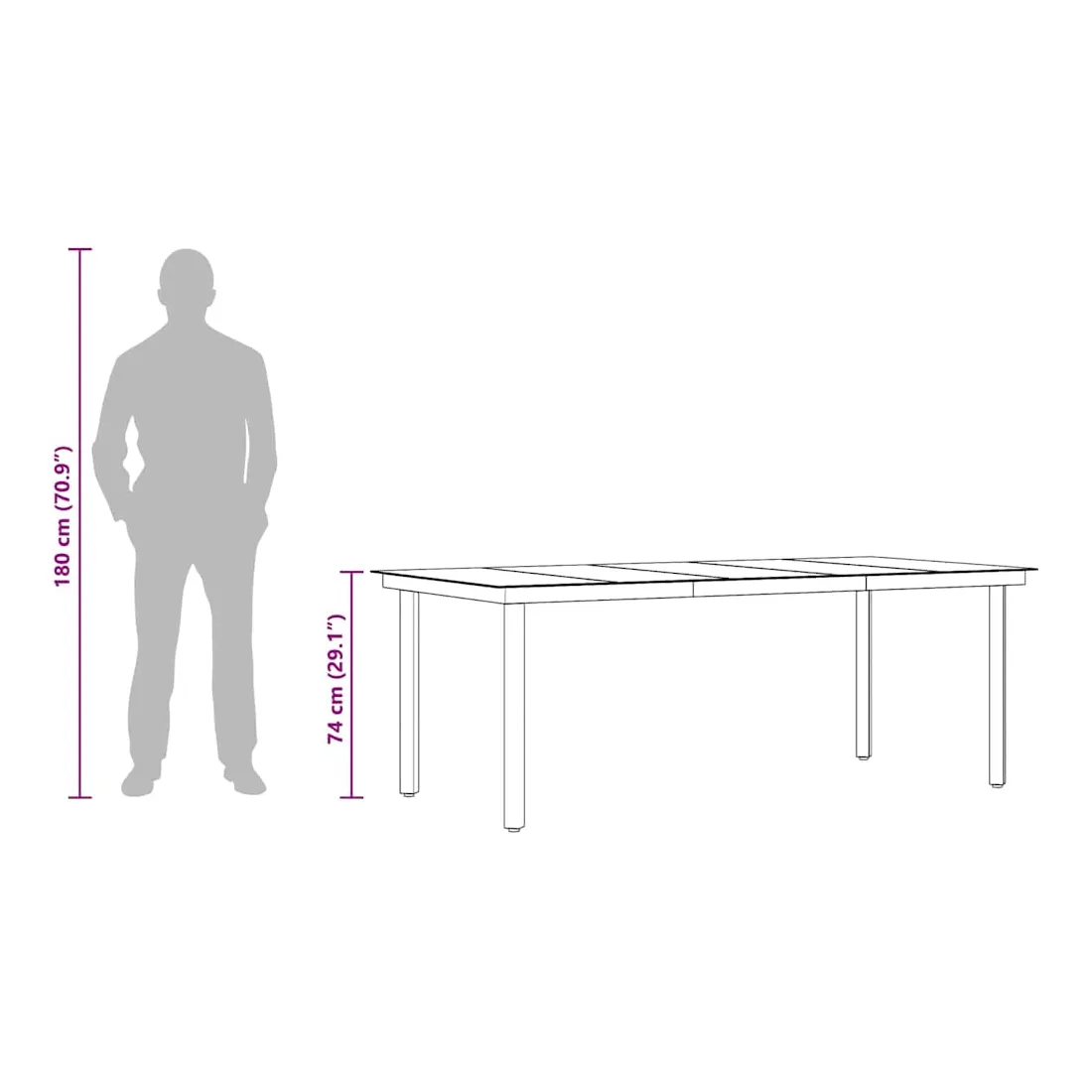 - Dimensions : 200 x 100 x 74 cm (L x l x H)