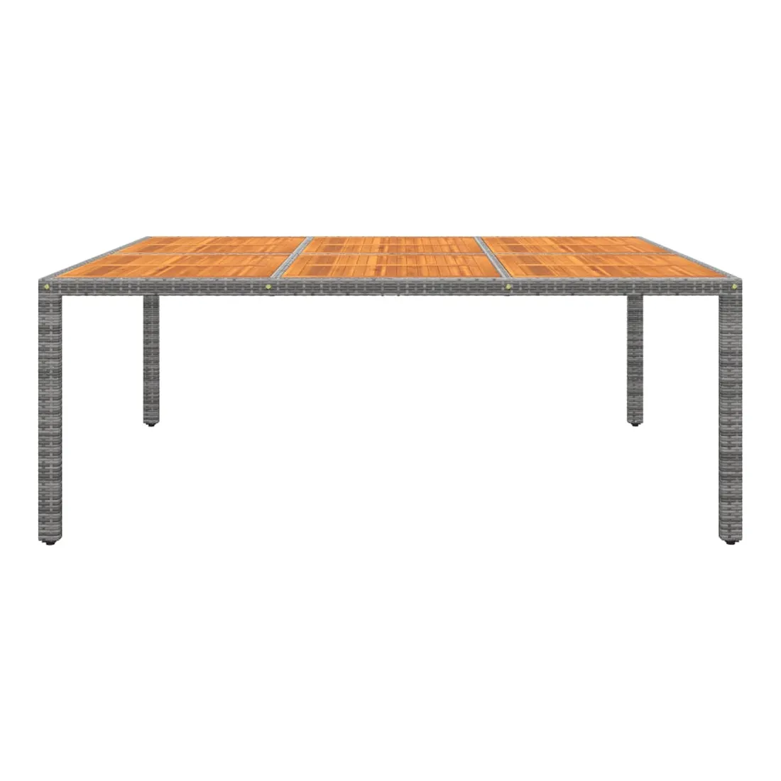 Combinant à la fois style et fonction, cette table de jardin est la pièce maîtresse de votre jardin, patio ou tout autre espace de vie. Dotée d'un cadre en acier enduit de poudre et enveloppé de résine tressée, cette table d'extérieur est solide et stable. Son dessus est fait de bois d’acacia massif, un bois dur avec des grains denses. Cette table de patio magnifiquement conçue est stable, durable et accrocheur. De plus, l'artisanat exquis et les magnifiques grains de bois rendent chaque pièce légèrement différente de la suivante. Remarque : afin de prolonger la durée de vie des meubles d'extérieur, nous vous recommandons de les protéger avec une housse imperméable.