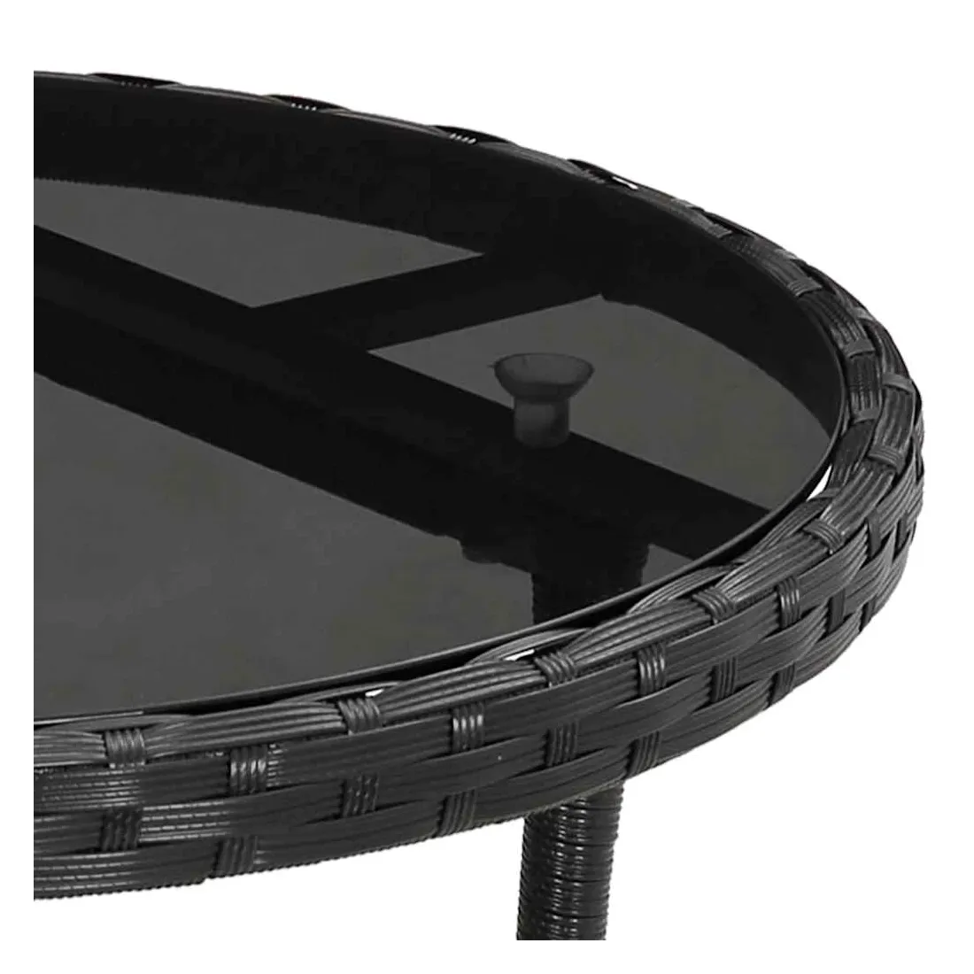 Combinant à la fois style et fonction, cette table de jardin en résine tressée sera certainement la pièce maîtresse de votre jardin, patio ou tout autre espace de vie. Dotée d'un cadre en acier enduit de poudre enveloppé de résine tressée, la table d’extérieur est durable. De plus, le dessus de table est en verre trempé, ce qui le rend facile à nettoyer. Grâce à sa construction légère, la table de jardin est facile à déplacer. Remarque : afin de prolonger la durée de vie des meubles d'extérieur, nous vous recommandons de les protéger avec une housse imperméable.