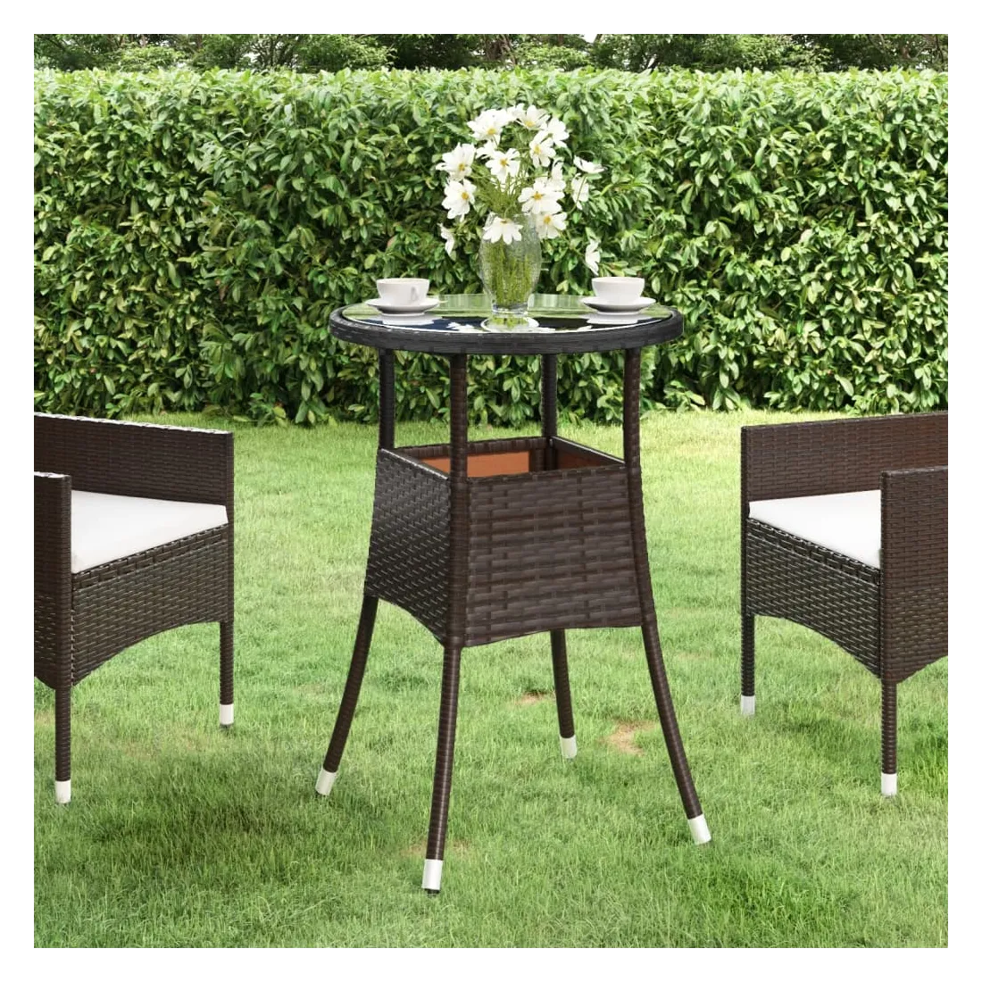 Combinant à la fois style et fonction, cette table de jardin en résine tressée sera certainement la pièce maîtresse de votre jardin, patio ou tout autre espace de vie. Dotée d'un cadre en acier enduit de poudre et enveloppé de résine tressée, cette table d'extérieur est solide et stable. De plus, le dessus de table est en verre trempé, ce qui le rend facile à nettoyer. Grâce à sa construction légère, la table de jardin est facile à déplacer. Remarque : afin de prolonger la durée de vie des meubles d'extérieur, nous vous recommandons de les protéger avec une housse imperméable.