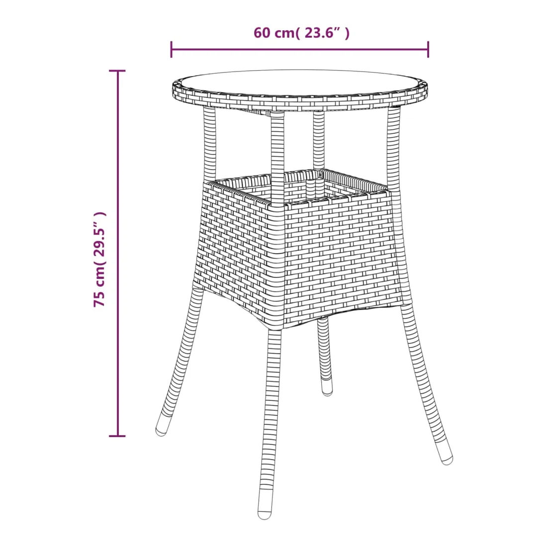 Combinant à la fois style et fonction, cette table de jardin en résine tressée sera certainement la pièce maîtresse de votre jardin, patio ou tout autre espace de vie. Dotée d'un cadre en acier enduit de poudre enveloppé de résine tressée, la table d’extérieur est durable. De plus, le dessus de table est en verre trempé, ce qui le rend facile à nettoyer. Grâce à sa construction légère, la table de jardin est facile à déplacer. Remarque : afin de prolonger la durée de vie des meubles d'extérieur, nous vous recommandons de les protéger avec une housse imperméable.