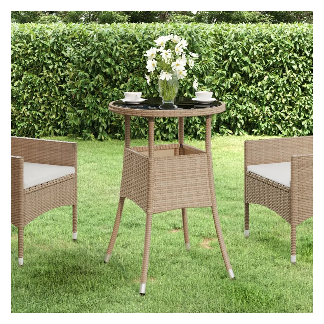 Combinant à la fois style et fonction, cette table de jardin en résine tressée sera certainement la pièce maîtresse de votre jardin, patio ou tout autre espace de vie. Dotée d'un cadre en acier enduit de poudre enveloppé de résine tressée, la table d’extérieur est durable. De plus, le dessus de table est en verre trempé, ce qui le rend facile à nettoyer. Grâce à sa construction légère, la table de jardin est facile à déplacer. Remarque : afin de prolonger la durée de vie des meubles d'extérieur, nous vous recommandons de les protéger avec une housse imperméable.