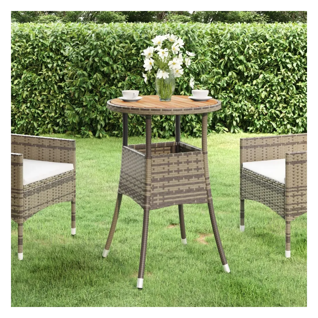 - Matériau : résine tressée, acier enduit de poudre, bois d'acacia massif