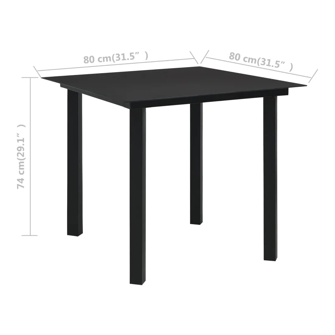 Table à dîner de jardin Noir 80x80x74 cm Acier et verre
