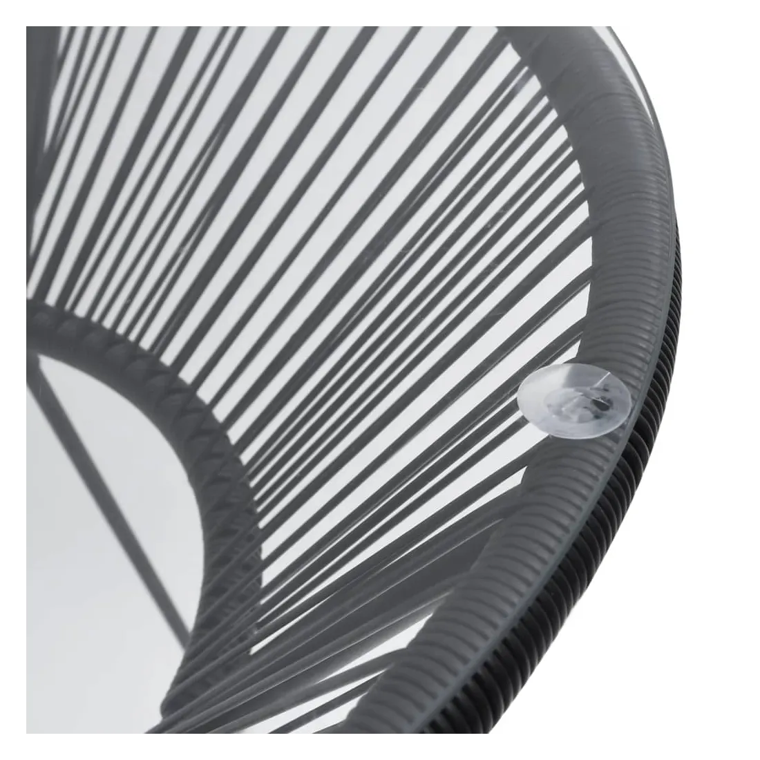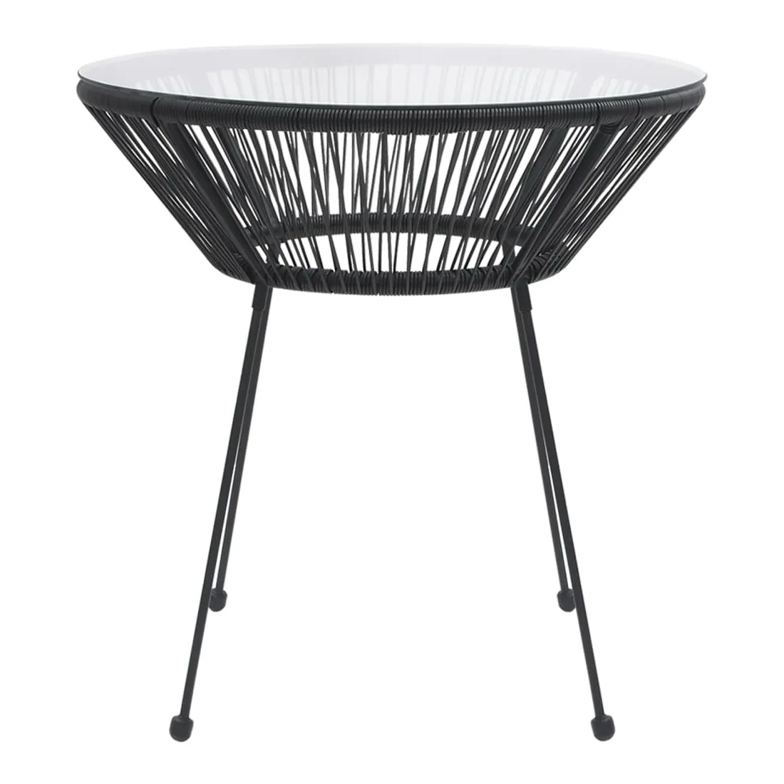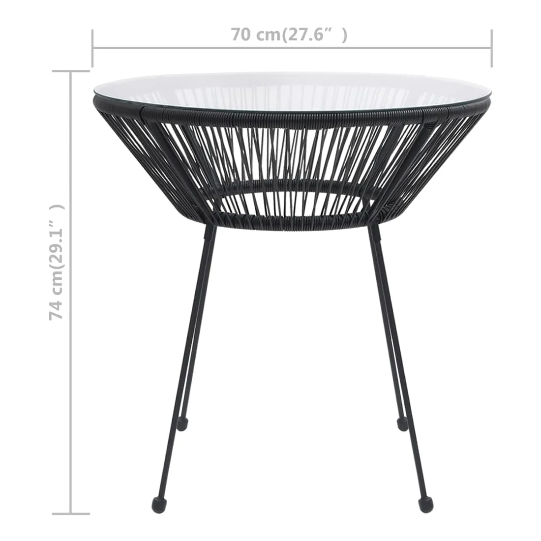 - Matériau : rotin PVC rond, verre trempé, acier enduit de poudre