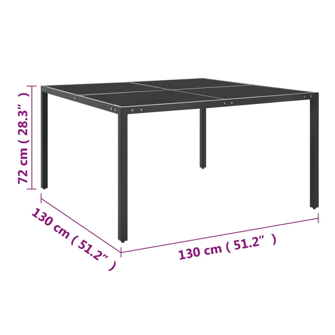 Cette table d'extérieur au design raffiné est destinée à être le point de mire de votre jardin ou terrasse ! Fabriquée en acier enduit de poudre, cette table d'extérieur est durable et robuste. Le dessus de table en verre trempé est parfait pour placer ou afficher vos différents essentiels. De plus, il est facile à nettoyer et à entretenir. Remarque : afin de prolonger la durée de vie des meubles d'extérieur, nous vous recommandons de les protéger avec une housse imperméable.