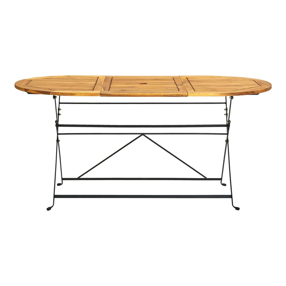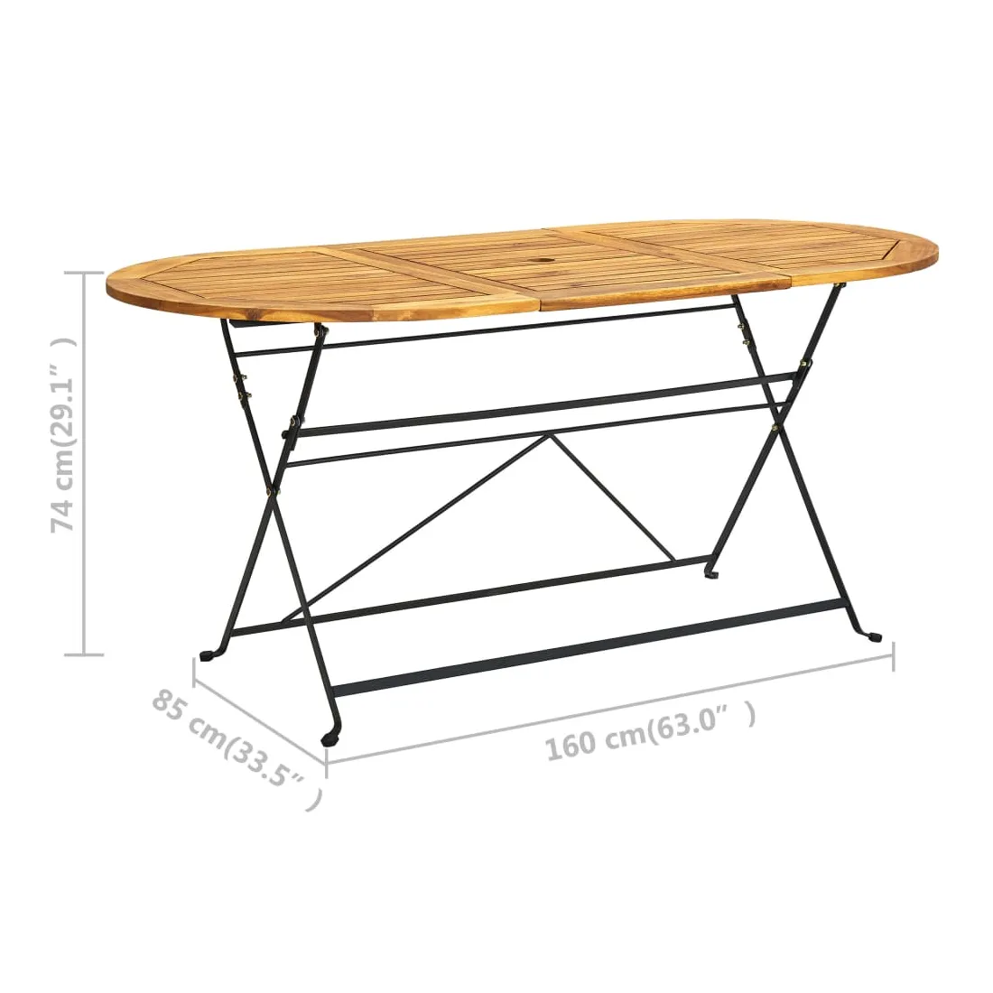 Cette table de jardin en bois d'acacia dégage un charme pastoral qui sera un excellent choix pour les dîners en plein air dans le jardin, sur la terrasse ou le patio. La table à manger de jardin est en bois dur d'acacia qui se caractérise par une excellente résistance à l'eau et durabilité. Par conséquent, la table est parfaite pour une utilisation extérieure. De plus, le cadre en acier robuste renforce la stabilité et la robustesse de la table et elle peut être rabattue pour économiser de l'espace lorsqu'elle n'est pas utilisée. Remarque : afin de prolonger la durée de vie des meubles d'extérieur, nous vous recommandons de les protéger avec une housse imperméable.