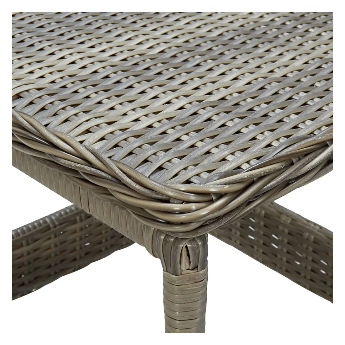 - Matériau : résine tressée (polyéthylène), acier enduit de poudre, panneau PP