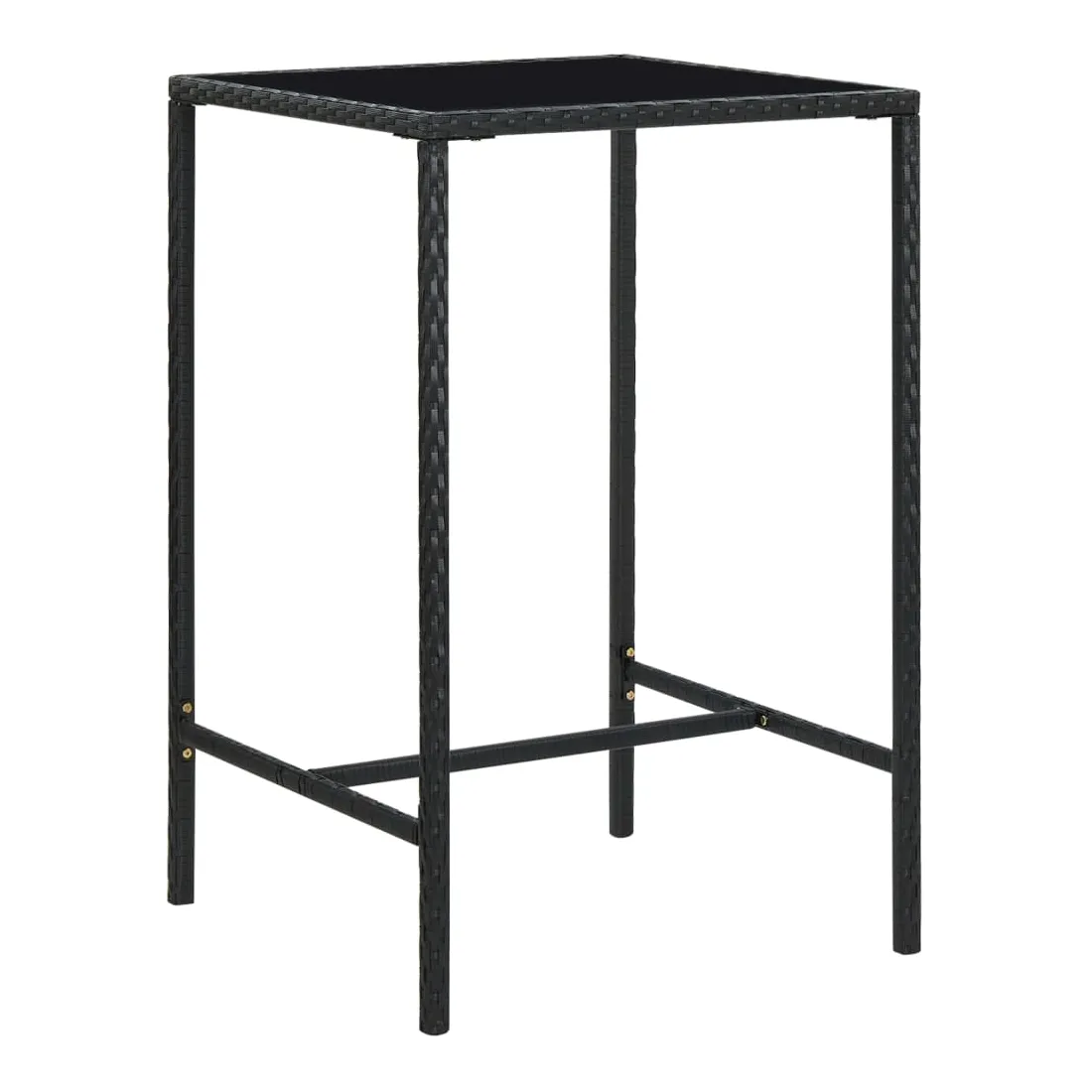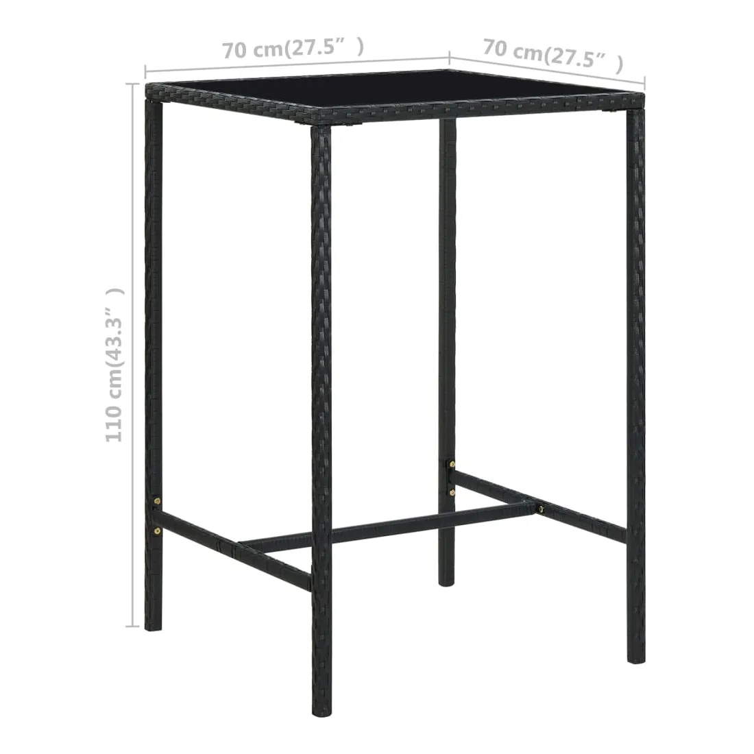 Table de bar de jardin Noir 70x70x110cm Résine tressée et verre
