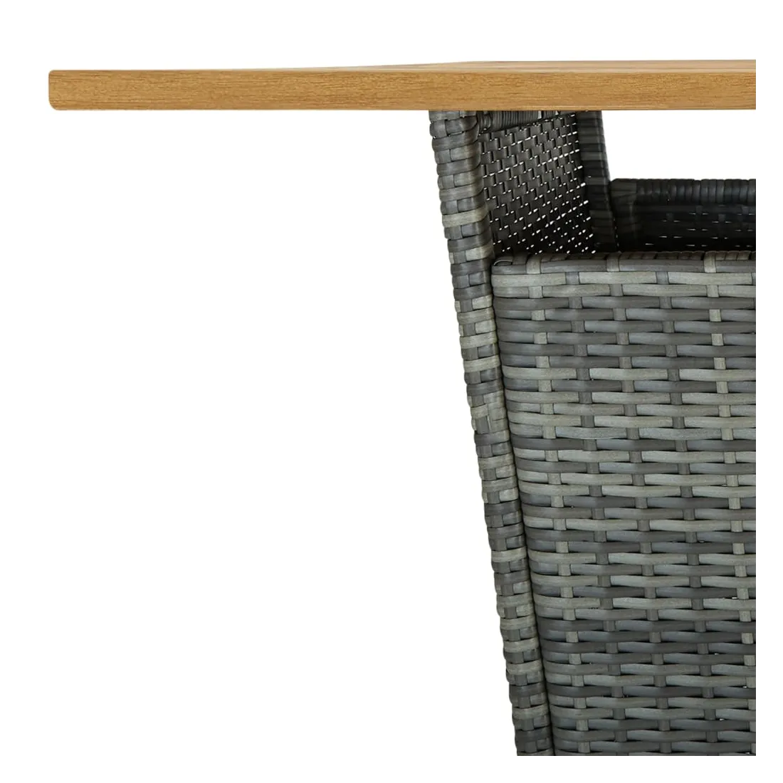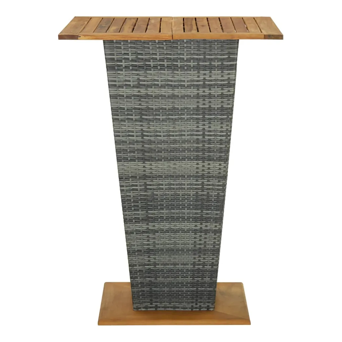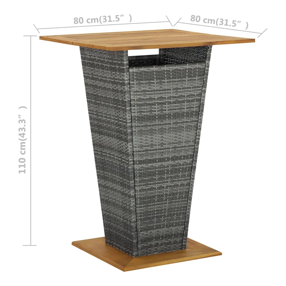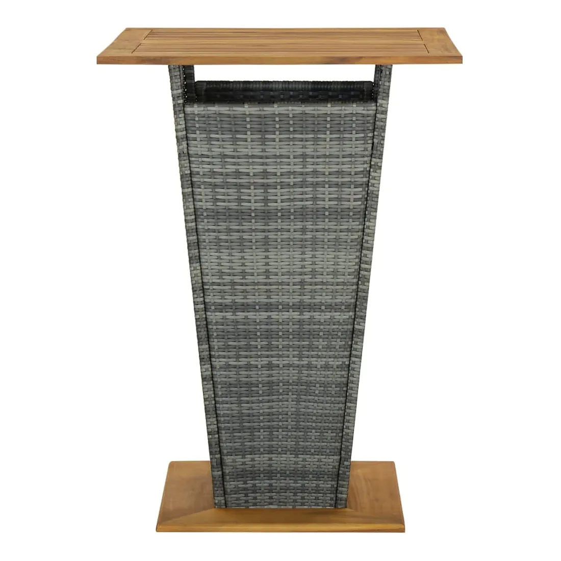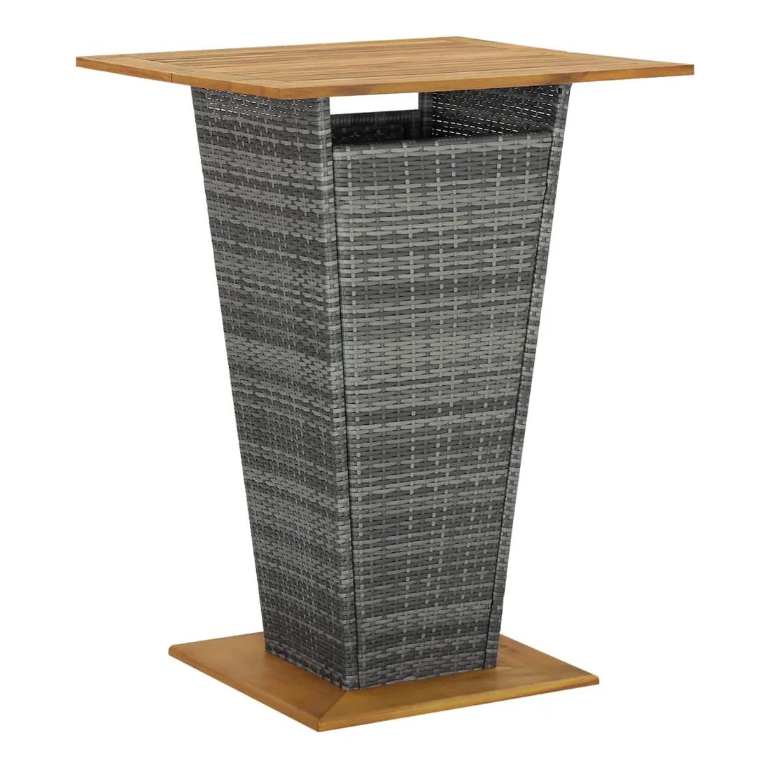 Sirotez votre vin préféré ou savourez un bon repas autour de cette table de bar en résine tressée ! Dotée d'un cadre en acier enduit de poudre recouvert de résine tressée résistante aux intempéries, cette table de comptoir garantit des années d'utilisation en plein air. De plus, le dessus de table et la base en bois d'acacia massif ajoutent de la robustesse et de la stabilité supplémentaires. Le dessus de table en bois avec un design à lattes est idéal pour placer des boissons, de la nourriture, etc. Grâce à la construction en résine tressée légère, cette table de jardin est facile à déplacer.