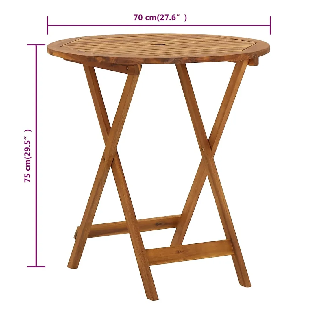 Vous cherchez quelque chose de plus raffiné et d'accrocheur pour votre espace extérieur ? La table de jardin en bois est un choix optimal pour vous ! Matériau durable : le bois d'acacia massif est un matériau naturel magnifique. Le bois d'acacia un bois dur tropical, qui est dense, robuste et durable.Design pliable : cette table à manger peut être facilement pliée pour un rangement et un transport pratiques.Dessus de table robuste : le dessus de table robuste vous offre de l'espace pour placer des collations, des paniers de fruits, des objets décoratifs ainsi que d'autres éléments essentiels.Surface facile à nettoyer : la surface à finition à l'huile rend cette table en bois facile à nettoyer avec un chiffon humide. Bon à savoir :Pour que vos meubles d'extérieur restent beaux, nous vous recommandons de les protéger avec une housse imperméable.