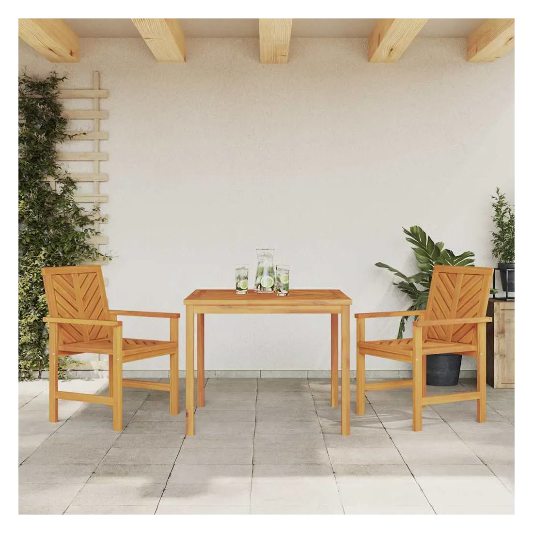 Ce set de repas de jardin moderne est un super choix pour manger dehors. Avec ses lignes simples et son style épuré, il crée une ambiance chic et classe dans votre jardin ou sur votre terrasse. Parfait pour rassembler la famille et les amis, il embellit tous les espaces extérieurs. Matériaux : Fabriqué en bois d'acacia massif, ce set a un look chaleureux et élégant grâce à son beau grain naturel. Ce bois est choisi pour sa solidité et son allure, s'intégrant parfaitement dans n'importe quel jardin. Composants inclus : Ce set est composé d'une table robuste et de chaises assorties, parfaites pour manger dehors. Chaque chaise a des pieds en acacia massif, avec accoudoirs et sièges, tous unis par une même couleur et matériau pour un look harmonieux. Caractéristiques : La forme rectangulai